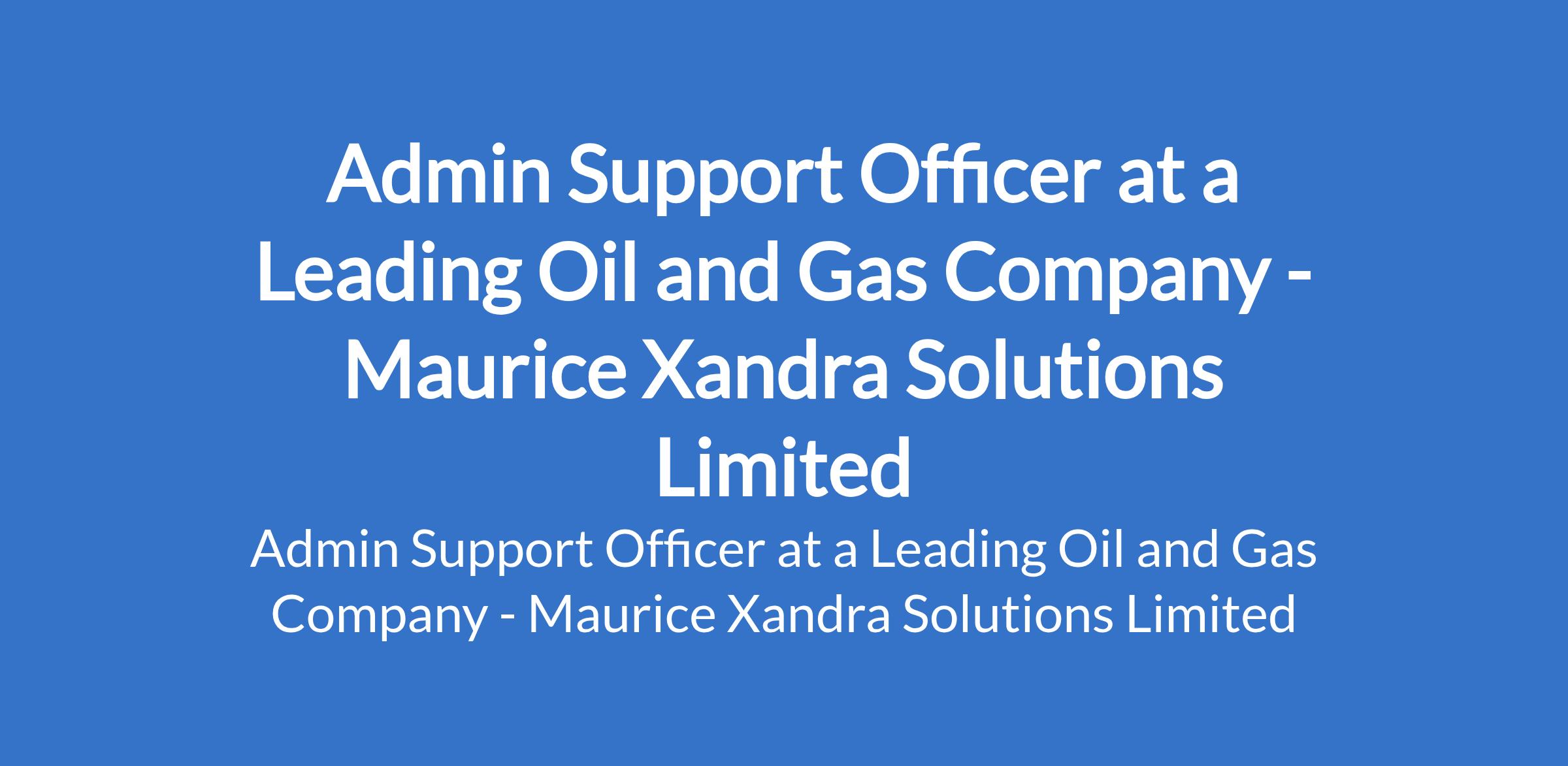 Maurice Xandra Solutions Limited - Our client, a leading oil and gas company is recruiting to fill the position of: Admin Support Officer. The position is located in Lagos State. Interested candidates should possess relevant qualifications with 58 years experience in administration, preferably within the oil & gas or energy sector.