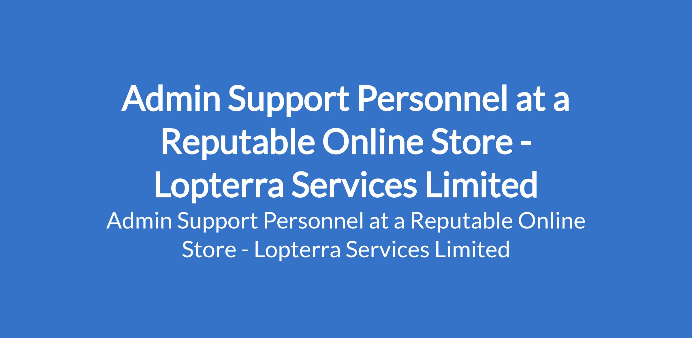 Lopterra Services Limited - Our client, a reputable Online Store is recruiting to fill the position of: Admin Support Personnel. The position is located in Ikeja, Lagos State. Salary: N70,000 / Month. Interested candidates should possess an O'Levels (SSCE, NECO, WAEC) with proven experience in a similar role and familiarity with inventory management software and tools, Microsoft Office Suite (Excel, Word, etc).