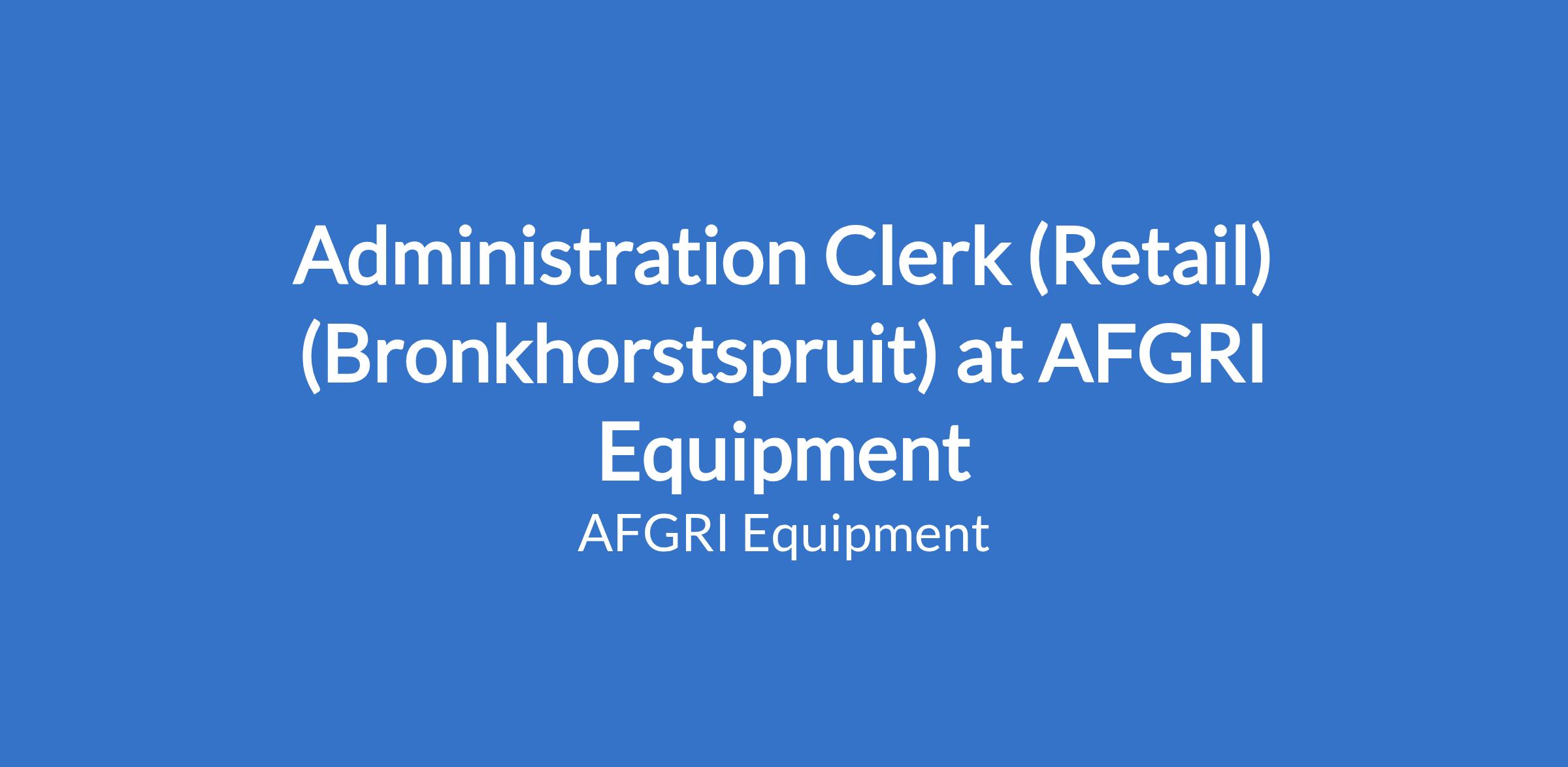 Administration Clerk (Retail) (Bronkhorstspruit) at AFGRI Equipment
