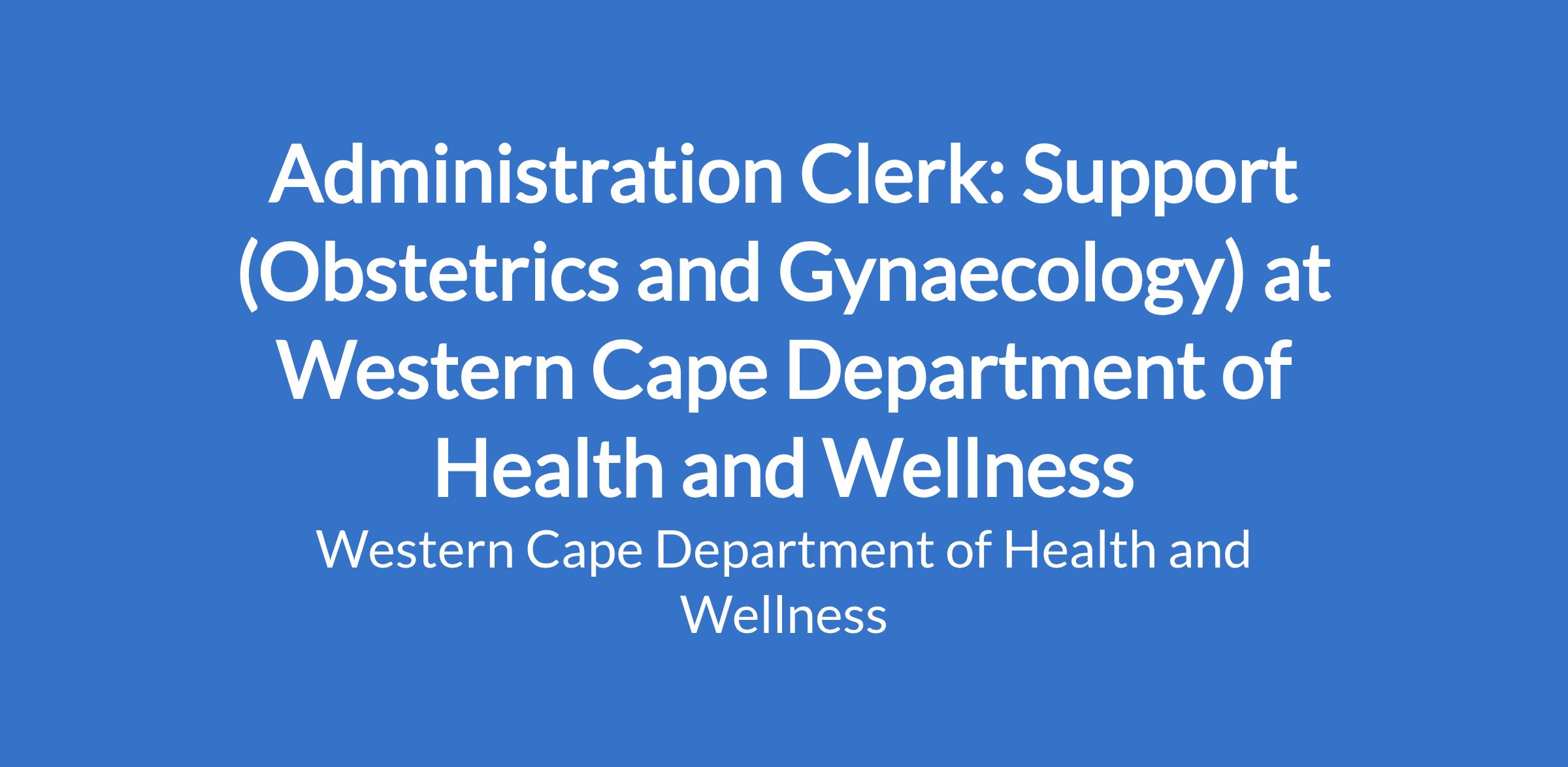 Manage the office of the Manager: Medical Services, Mother Women Child and Adolescent Health Care. Provide administrative support to the Manager. Provide meeting support to the Manager. Provide manager with quality assurance support (complaints and audits). Act as Medical Intern administrator in support of medical intern manager.