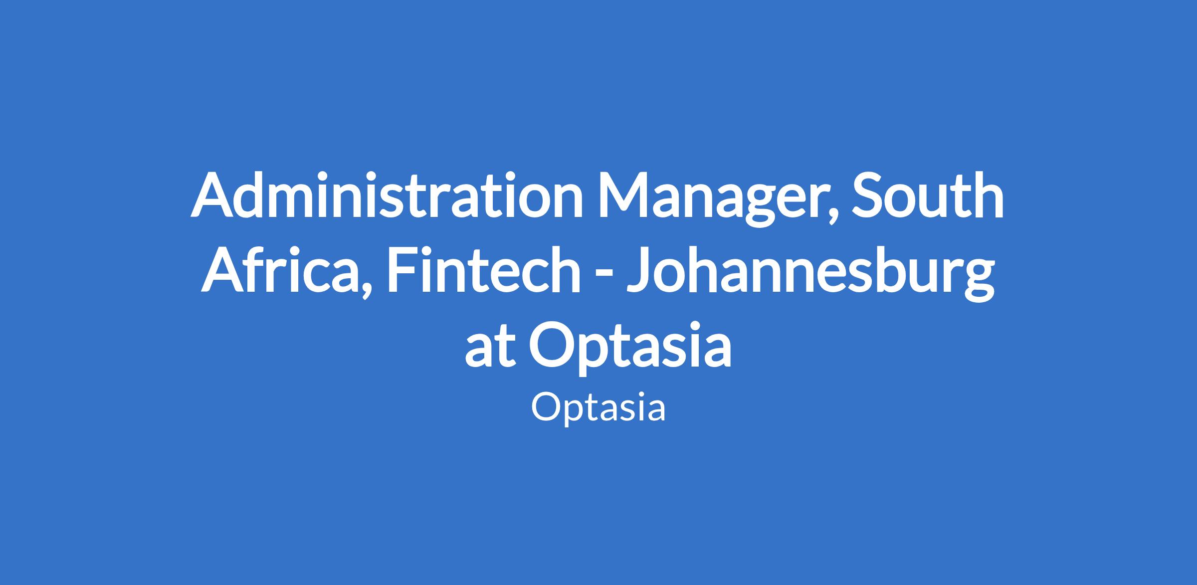 Administration Manager, South Africa, Fintech - Johannesburg at Optasia
