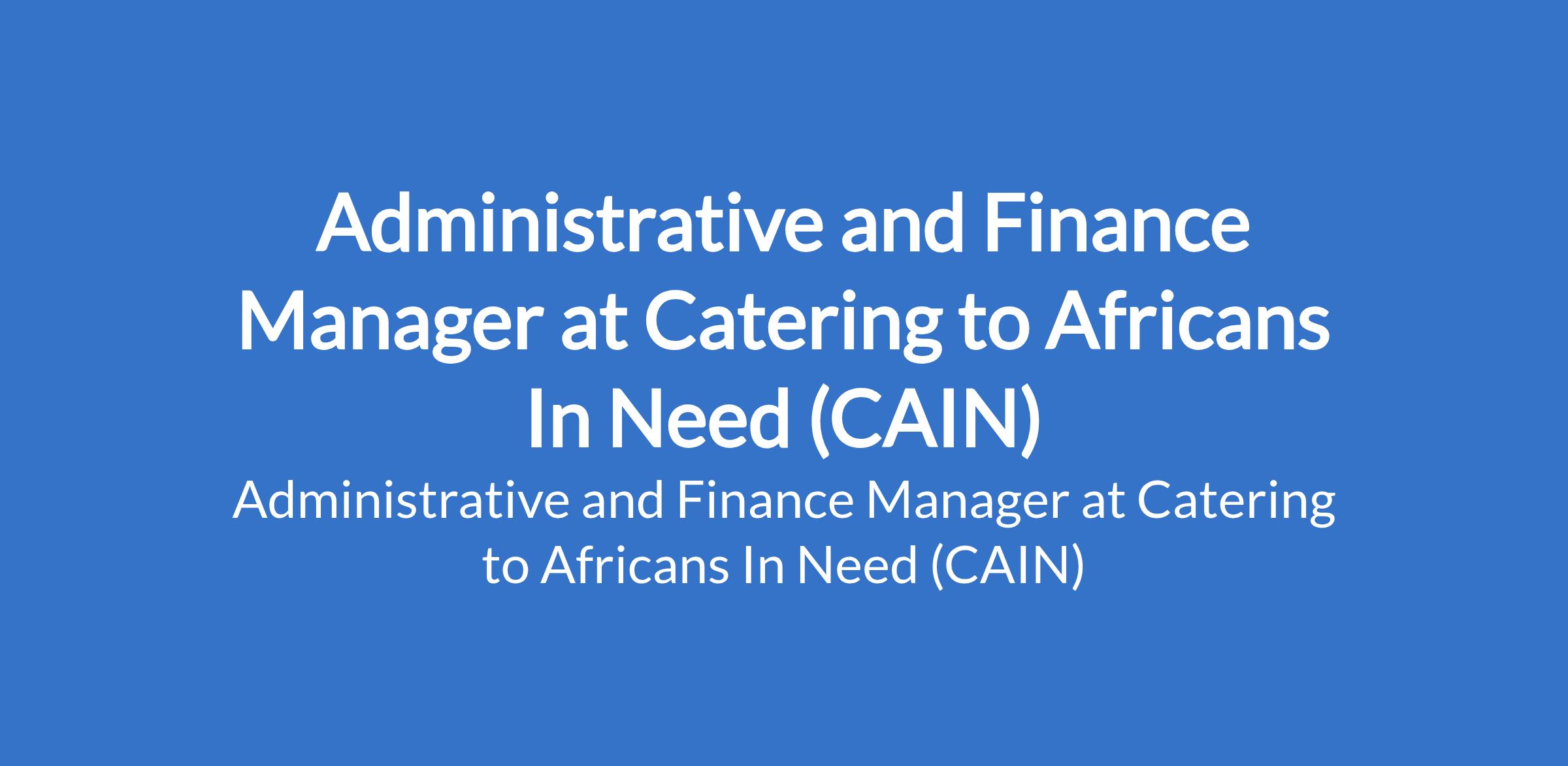 Catering to Africans In Need (CAIN) is recruiting to fill the position of: Administrative and Finance Manager. The position is located in Lagos State. Interested candidates should possess a Bachelors Degree in Accounting, Finance, or a related field (minimum 2:1) with 12 years of experience working in an Accounting or Audit firm.