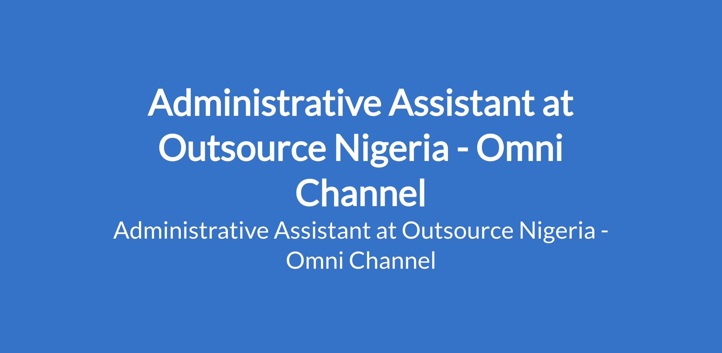 Outsource Nigeria - Omni Channel is recruiting to fill the position of: Administrative Assistant. The position is located in Anthony, Lagos State. Salary: N150,000 / monthly. Interested candidates should possess a minimum of OND / Degree in Business Administration or related fields with 12 years experience in administrative or office support role.