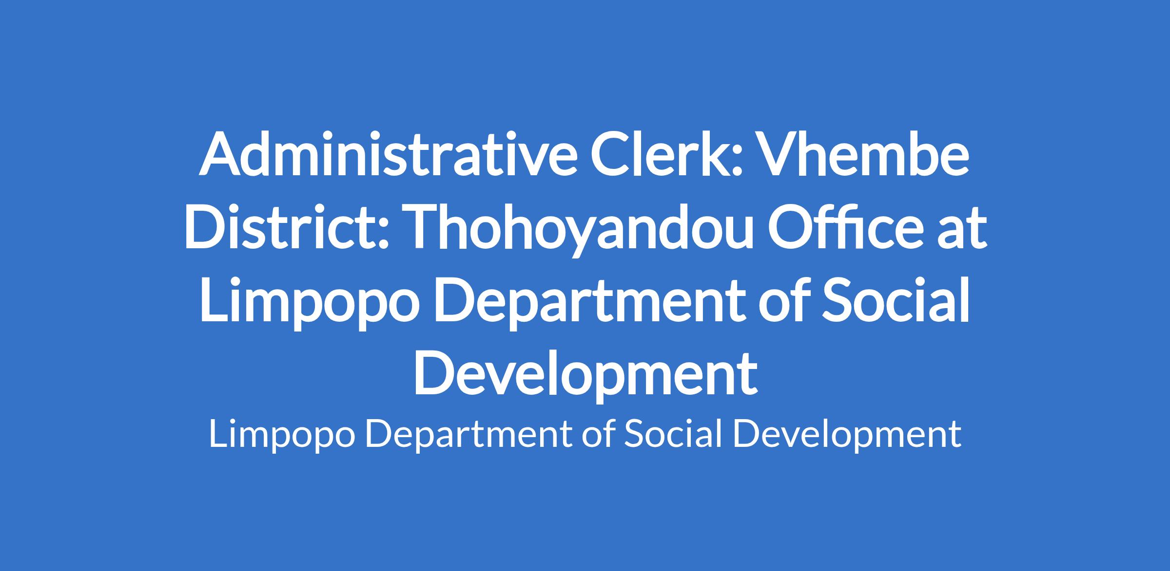 Render general clerical support services. Provide SCM clerical services. Provide financial admin support. Assist in collecting statistics. Intake client information. Filling of records. Distribute food parcels. Updating client register.