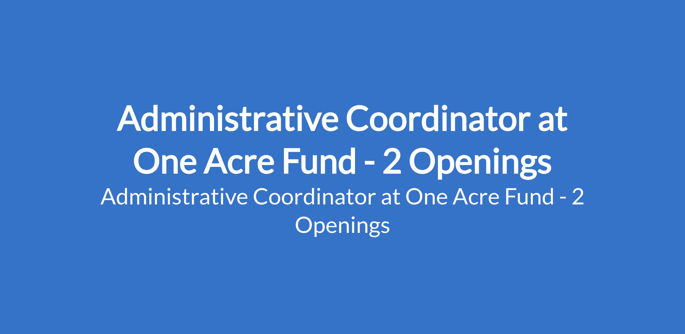 One Acre Fund is recruiting to fill the position of: Administrative Coordinator. The position is located in Bauchi and Minna, Niger States. Interested candidates should possess relevant qualifications with 3 - 5 years of experience in Administration, Facility or Office Management, or similar roles.