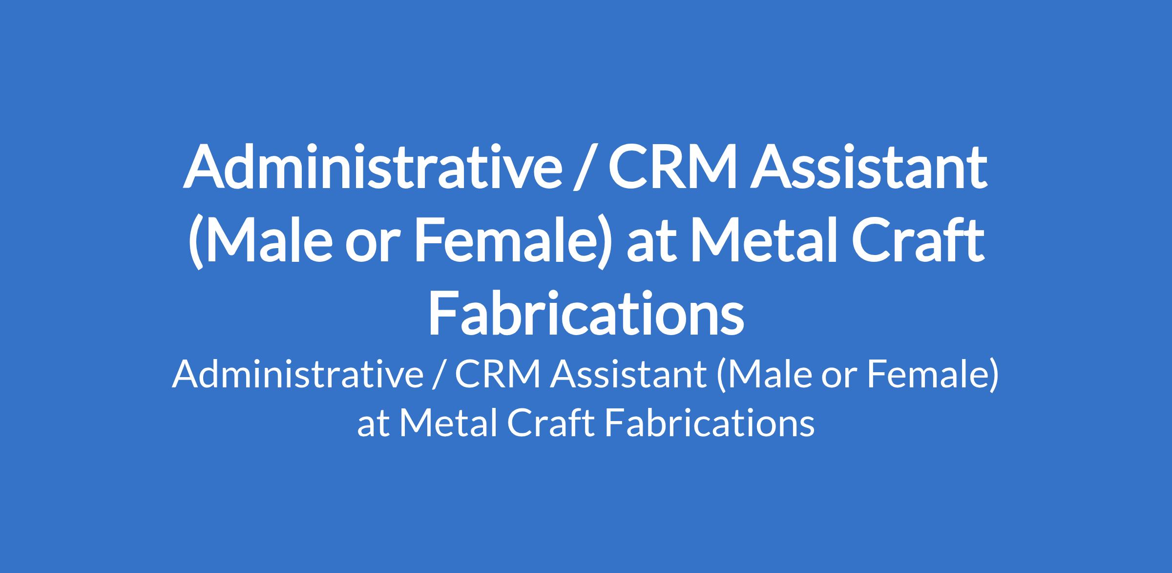 Administrative / CRM Assistant (Male or Female) at Metal Craft Fabrications