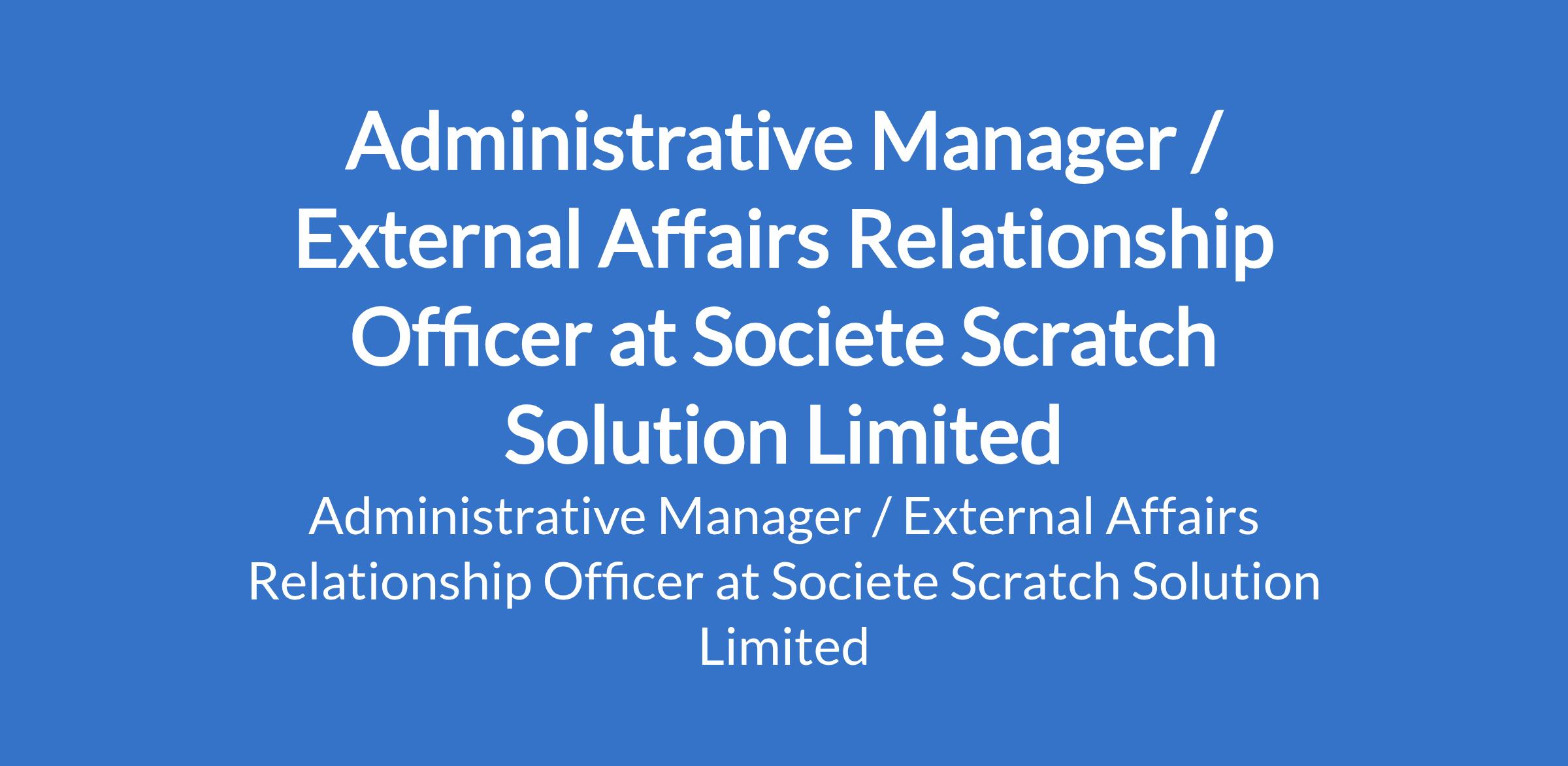 Societe Scratch Solution Limited is recruiting to fill the position of: Administrative Manager / External Affairs Relationship Officer. The position is located in Douala, Cameroon. Salary: XAF150,000 - XAF250,000 per month. Interested candidates should possess a relevant qualification with at least 3 years of experience in public relations, external liaison, or administrative management. Candidates with work experience in multinational enterprises, international organizations, or large local enterprises in Cameroon will be given priority.