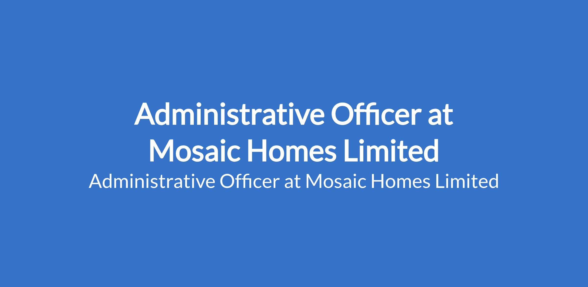 Mosaic Homes Limited is recruiting to fill the position of: Administrative Officer. The position is located in Port Harcourt, Rivers State. Salary: N100,000 - N150,000 per month. Interested candidates should possess a BSc / HND in Business Administration, Management, or related fields with 23 years of relevant work experience.
