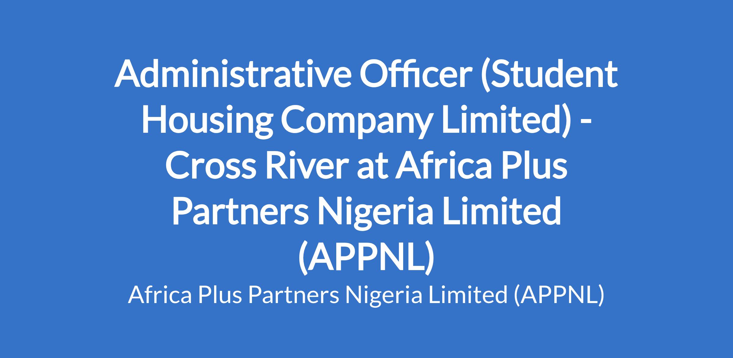 Administrative Officer (Student Housing Company Limited) - Cross River at Africa Plus Partners Nigeria Limited (APPNL)