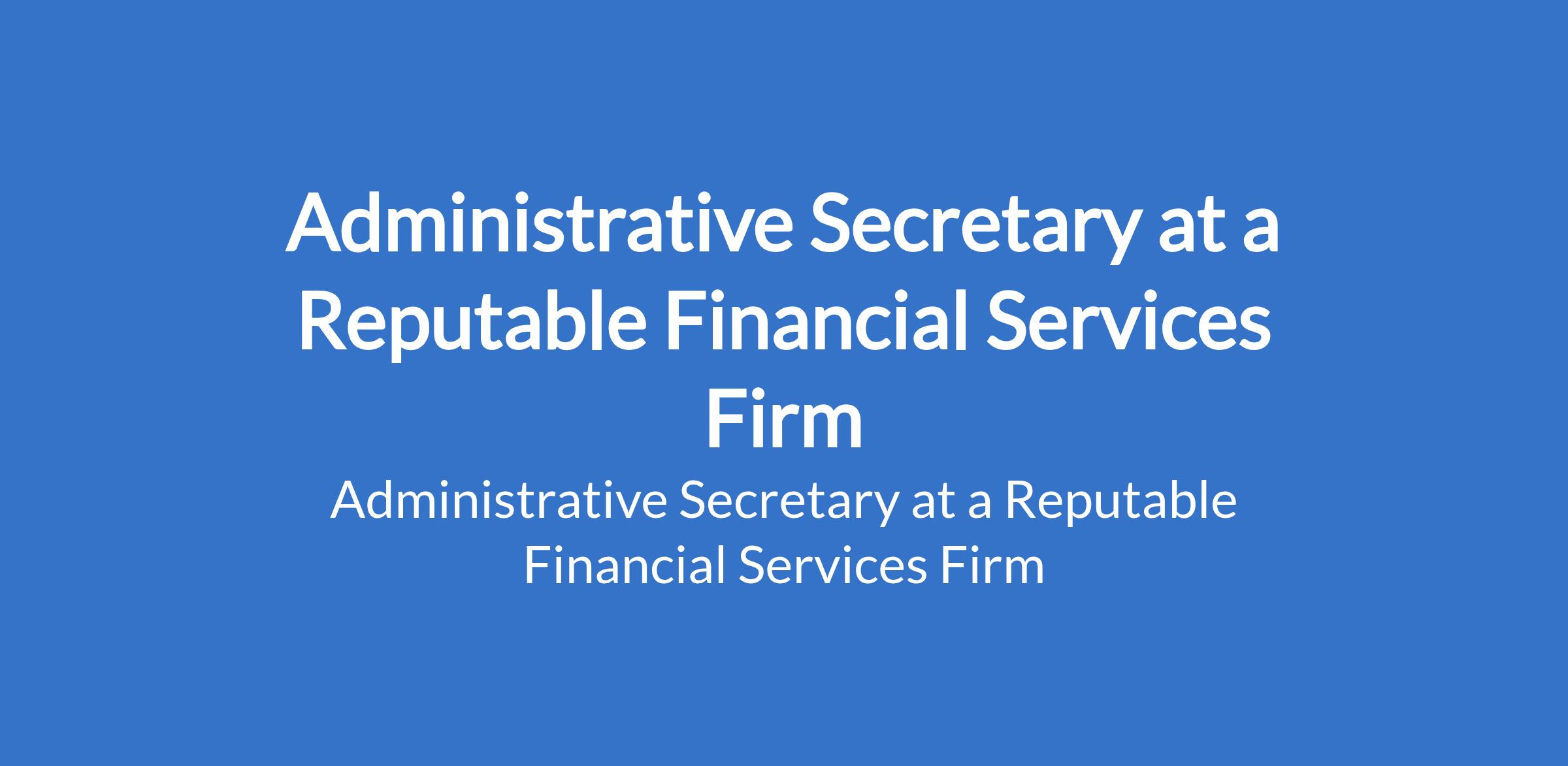 A reputable Financial Services Firm is recruiting to fill the position of: Administrative Secretary. The position is located in Lagos State. Interested candidates should possess a B.Sc / HND / OND in Office Technology with 2 years experience.