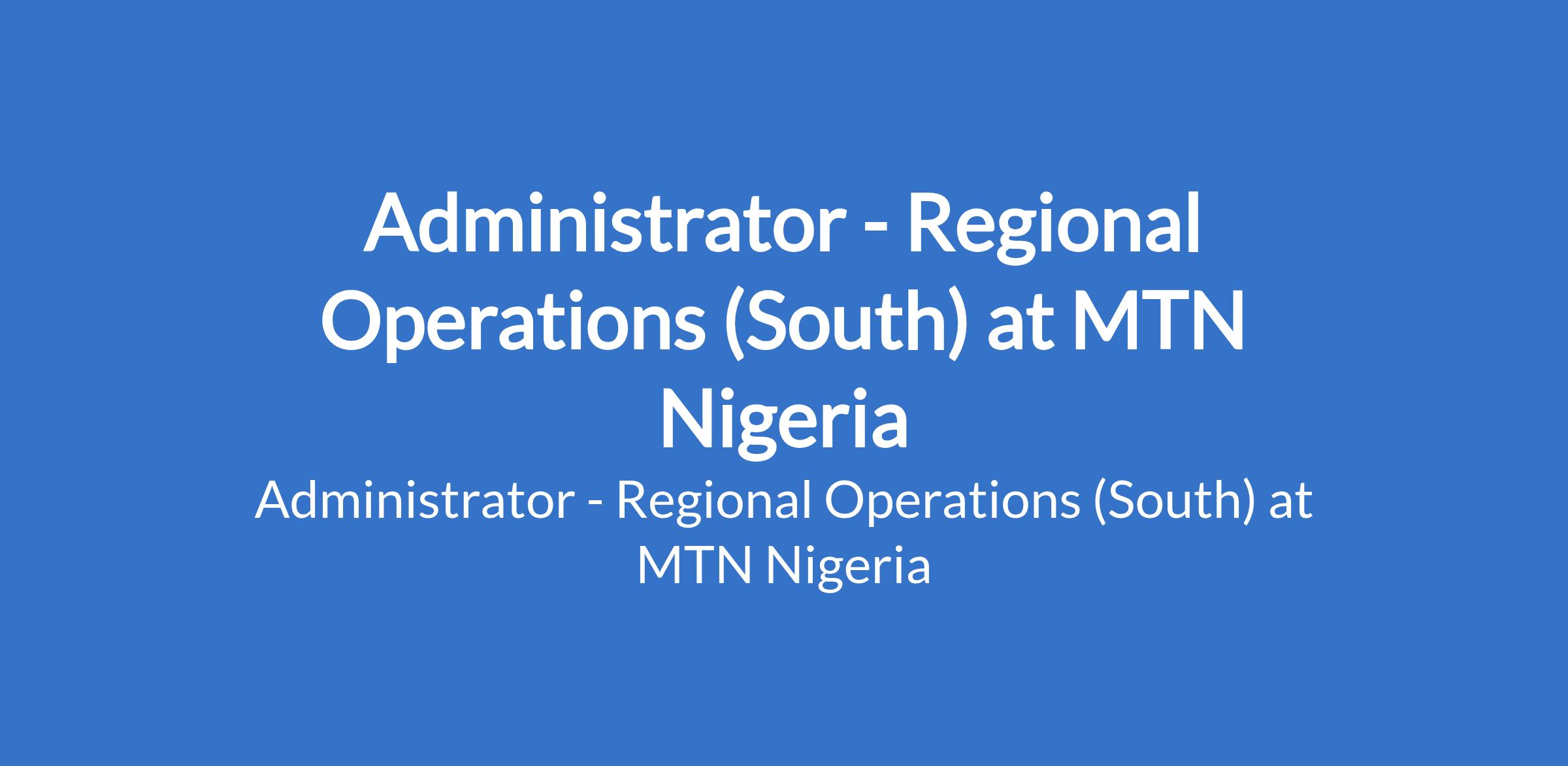 MTN Nigeria is recruiting to fill the position of: Administrator - Regional Operations (South). The position is located in Port Harcourt, Rivers State. Interested candidates should possess a first Degree in any related field with 13 years experience in an area of specialisation, with experience working with others.
