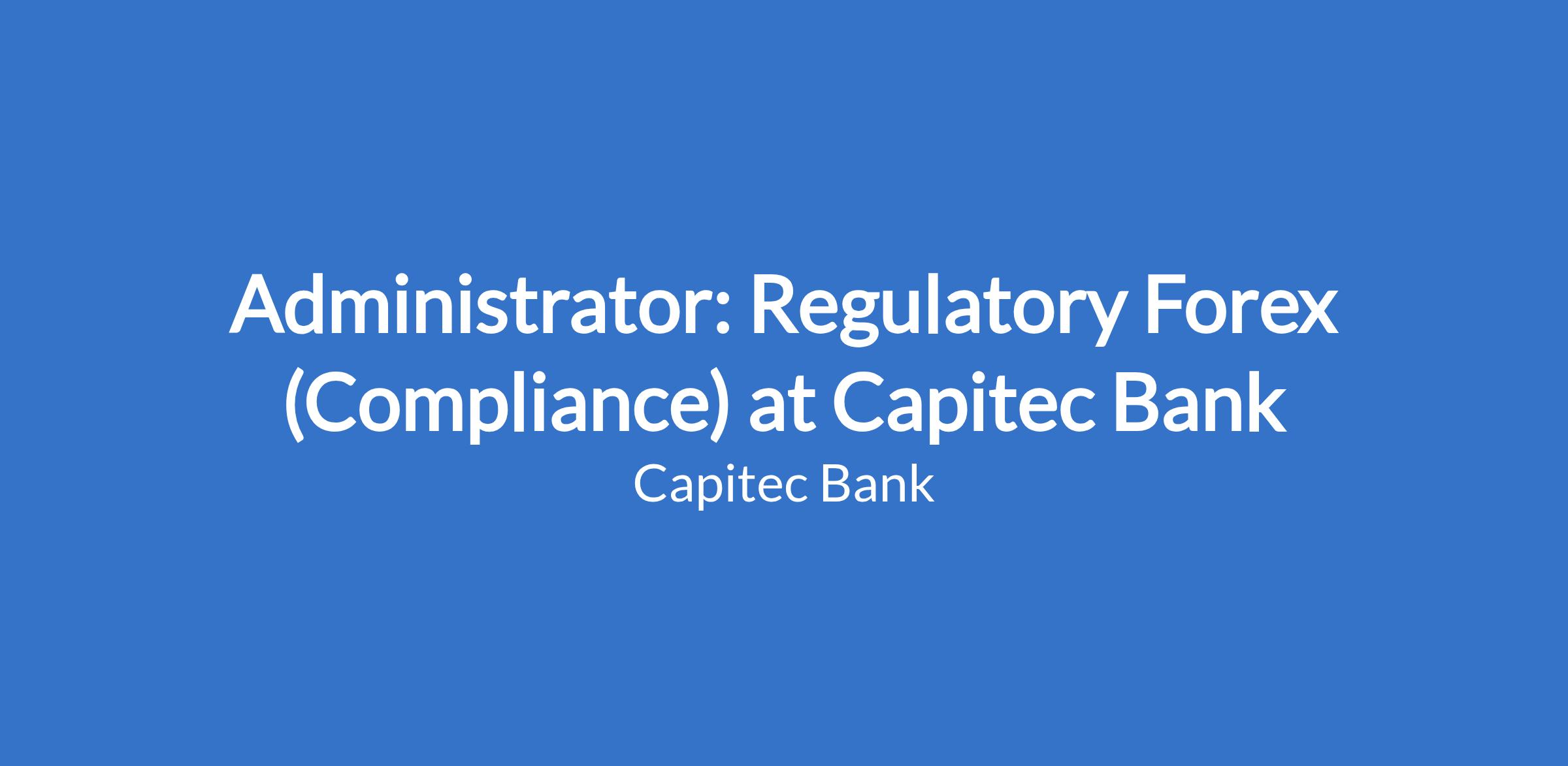 Administrator: Regulatory Forex (Compliance) at Capitec Bank