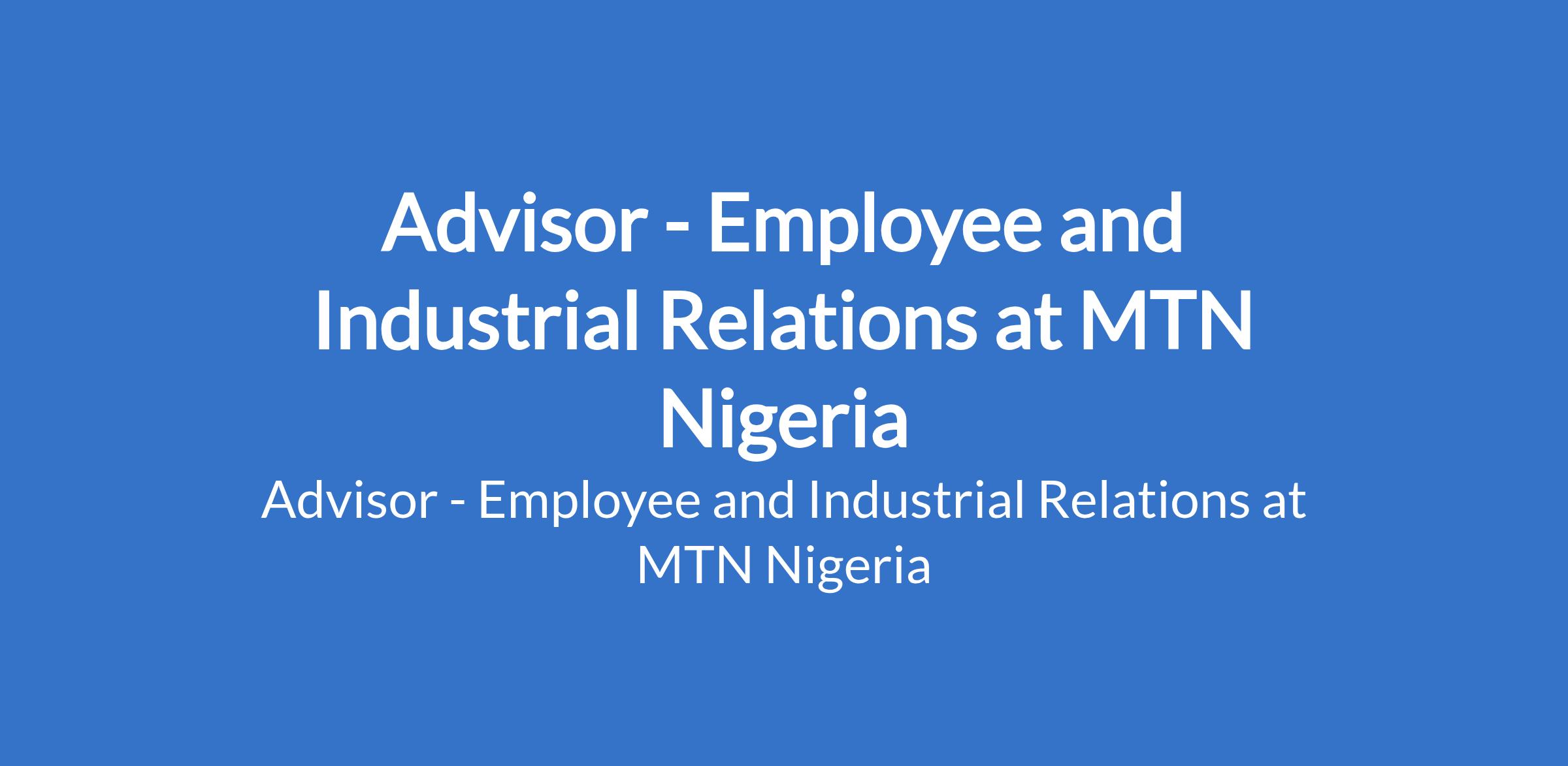 MTN Nigeria is recruiting to fill the position of: Advisor - Employee and Industrial Relations. The position is located in Ikoyi, Lagos State. Interested candidates should possess a First Degree in a related discipline with 37 years of experience in a related specialization, with experience working with others.