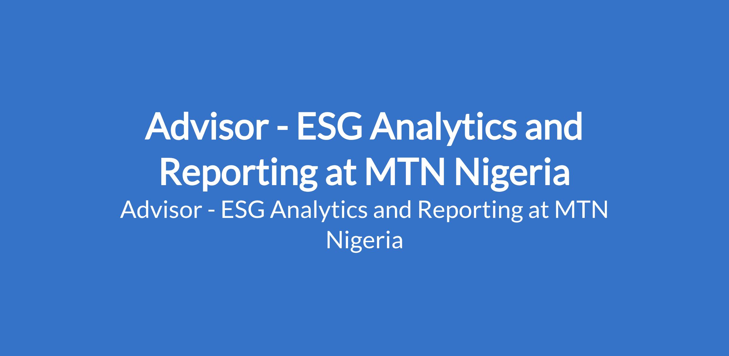 MTN Nigeria is recruiting to fill the position of: Advisor - ESG Analytics and Reporting. The position is located in Ikoyi, Lagos State. Interested candidates should possess a First Degree in Computer Science, Statistics, Information Management, Information Technology, Environmental Science, or a related field with 3-7 years experience.