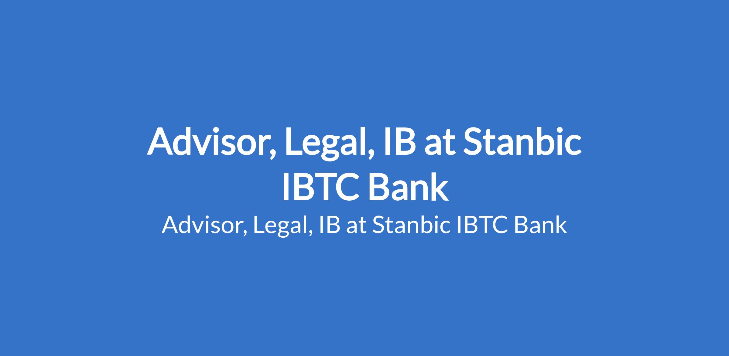 Stanbic IBTC Bank is recruiting to fill the position of: Advisor, Legal, IB. The position is located in Walter Carrington Crescent - Victoria Island, Lagos State. Interested candidates should possess a Bachelor of Laws from a University (LLB) as well as the Nigerian Law School (B.L) with 8-10 years' experience.