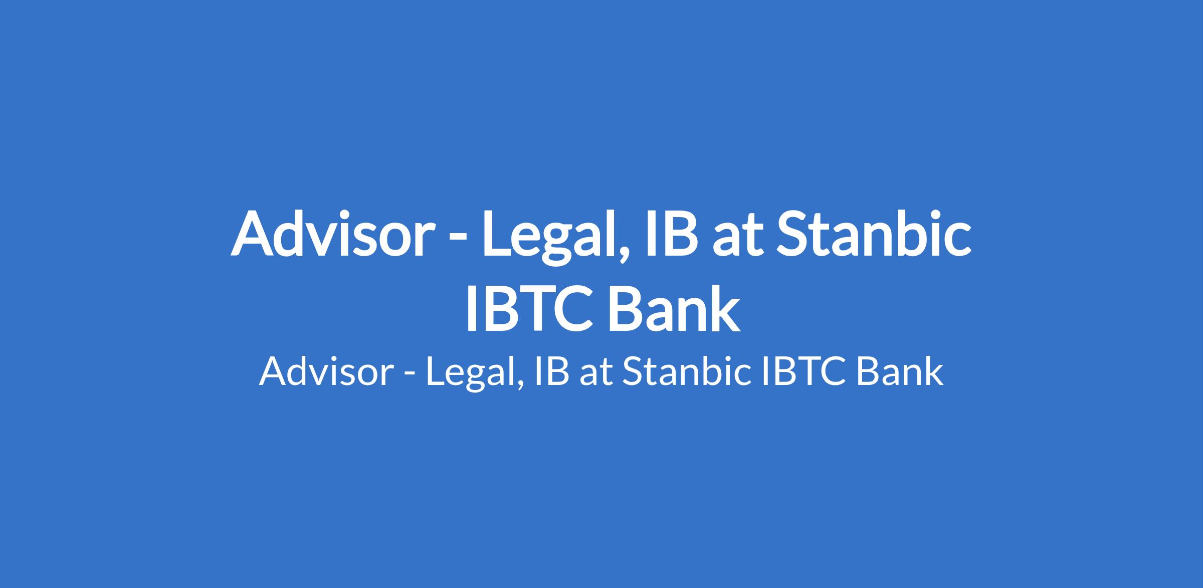 Stanbic IBTC Bank is recruiting to fill the position of: Advisor - Legal, IB. The position is located in Walter Carrington Crescent, Lagos State. Interested candidates should possess a Bachelor`s Degree in Law from a university (LLB) as well as the Nigerian Law School (B.L), with 8 - 10 years experience in handling legal issues, relating with regulators and external solicitors.