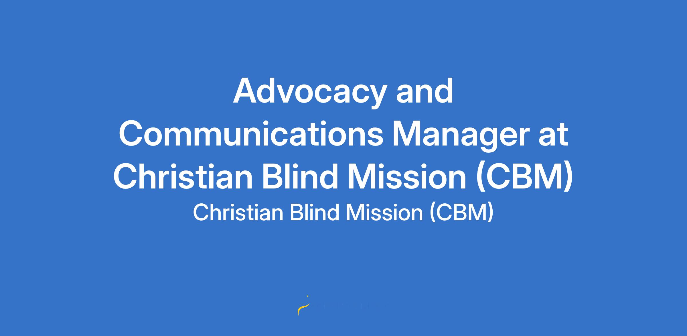 The successful candidate will provide operational leadership for continuity and execution of existing advocacy and communications strategy for CBM's Inclusive Health Initiative (IHI). The role ensures the effective implementation of the IHI advocacy strategy across global and country levels, strengthens partnerships and stakeholder engagement, coordinates communications and knowledge sharing, and leads the development of the IHI Annual Report to advance CBM's vision of inclusive, equitable, and integrated health for all. This is a 6month temporary maternity cover position.
