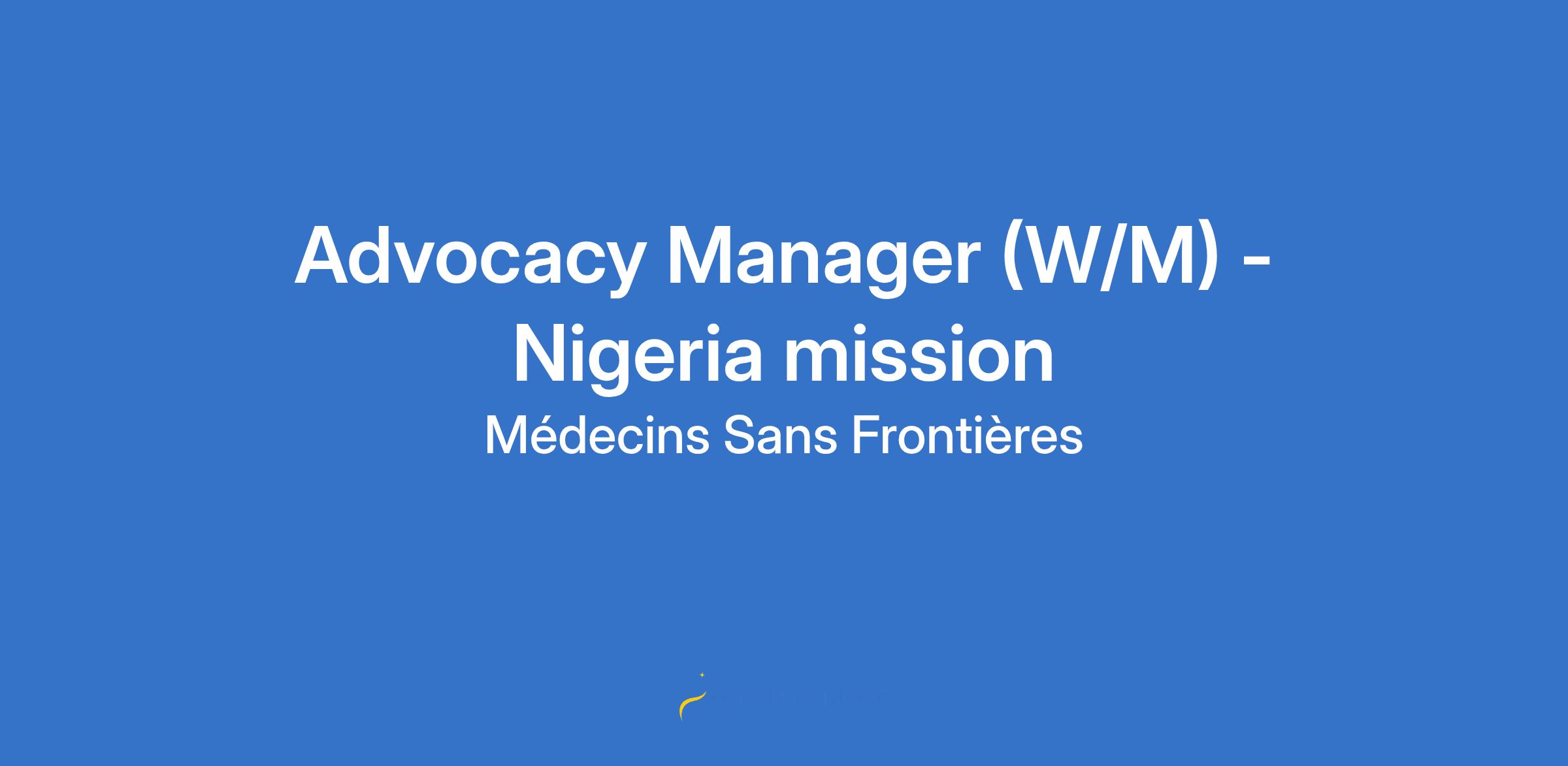 Advocacy Manager (W/M) - Nigeria mission | Médecins Sans Frontières