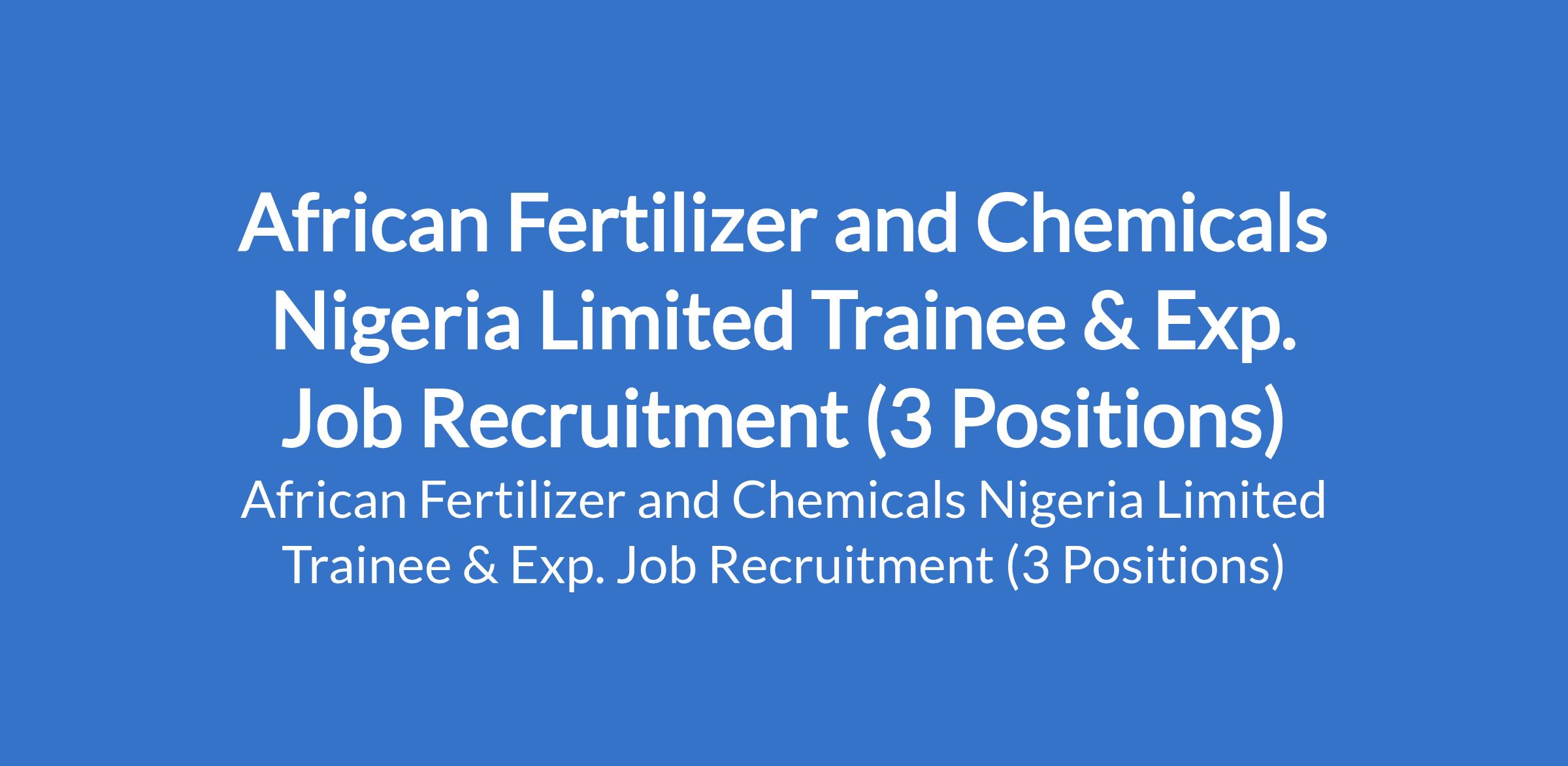 African Fertilizer and Chemicals Nigeria Limited Trainee & Exp. Job Recruitment (3 Positions)