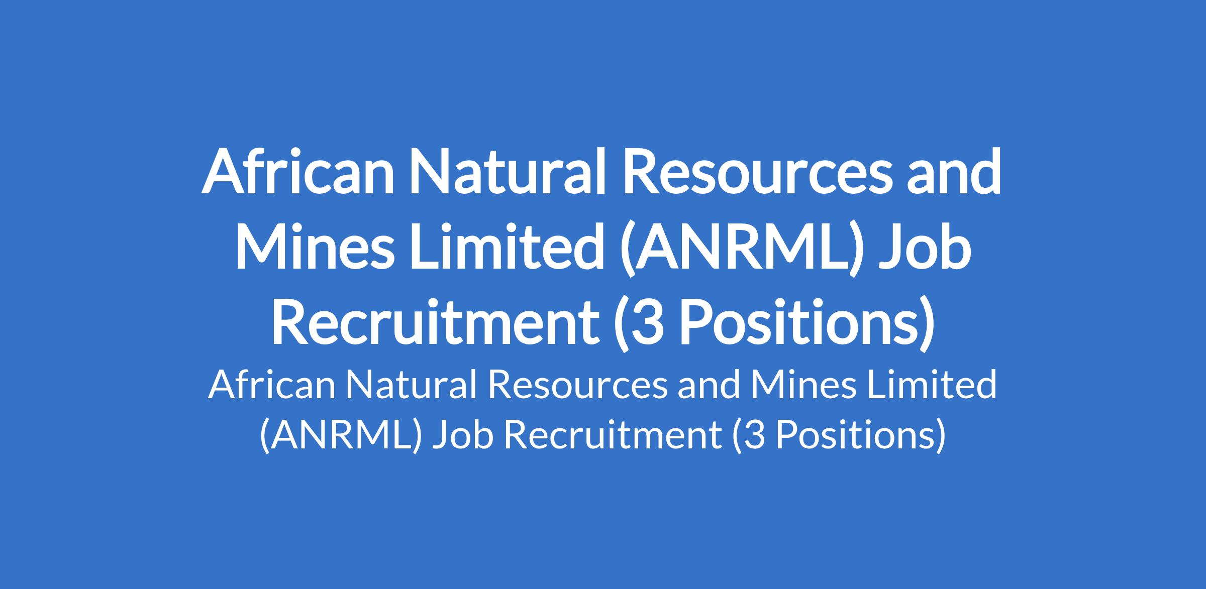 African Natural Resources and Mines Limited (ANRML) Job Recruitment (3 Positions)