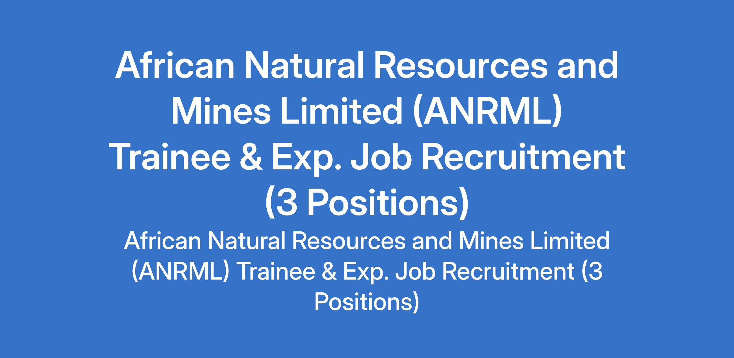 African Natural Resources and Mines Limited (ANRML) Trainee & Exp. Job Recruitment (3 Positions)