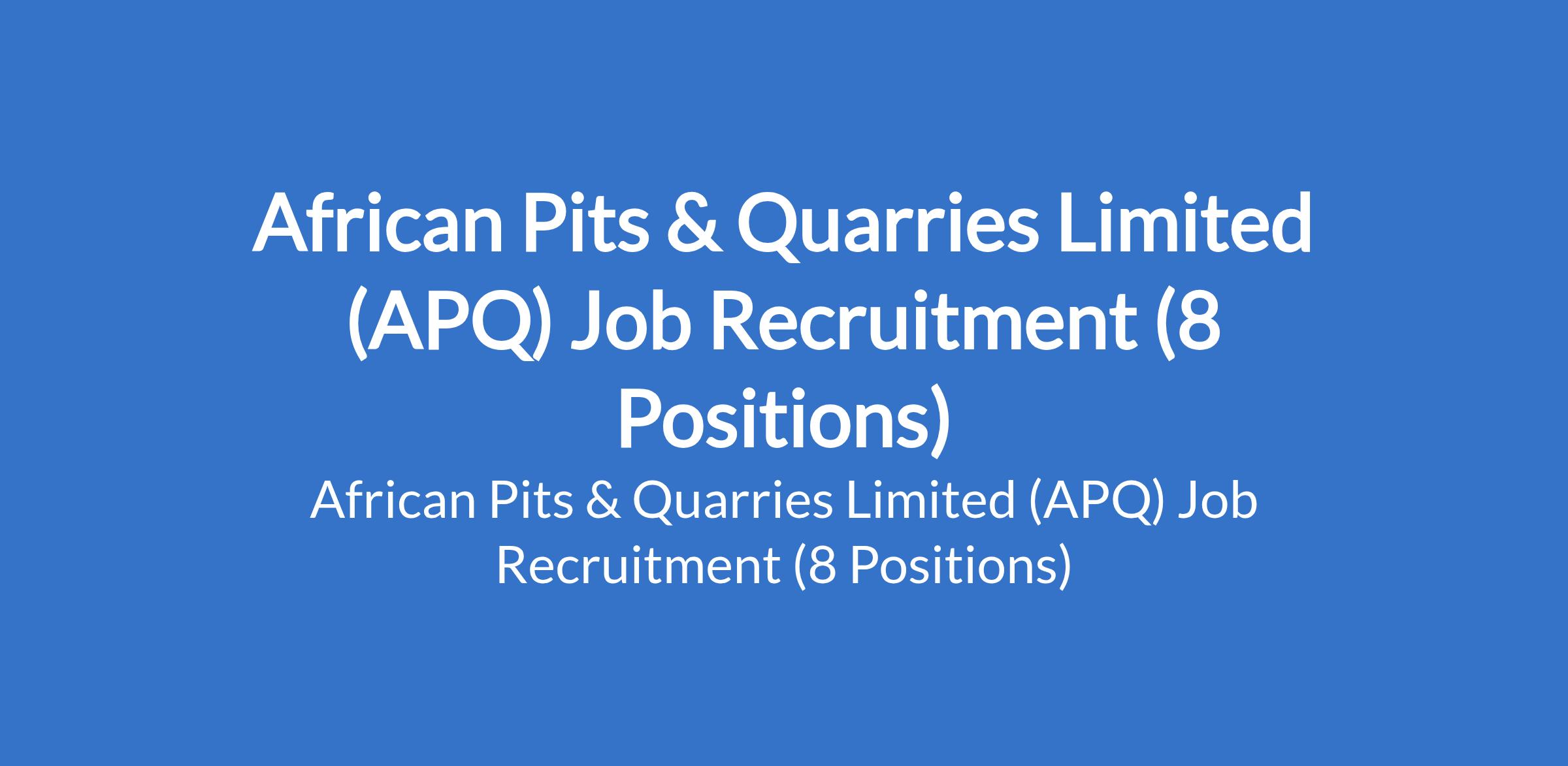 African Pits & Quarries Limited (APQ) is recruiting suitably qualified candidates to fill the following positions in Enugu State: Mining Engineer, QC Officer, Security Supervisor, Mechanical Engineer, Excavator Operator, Howo Truck Driver, Dozer Operator, and HSE Officer.