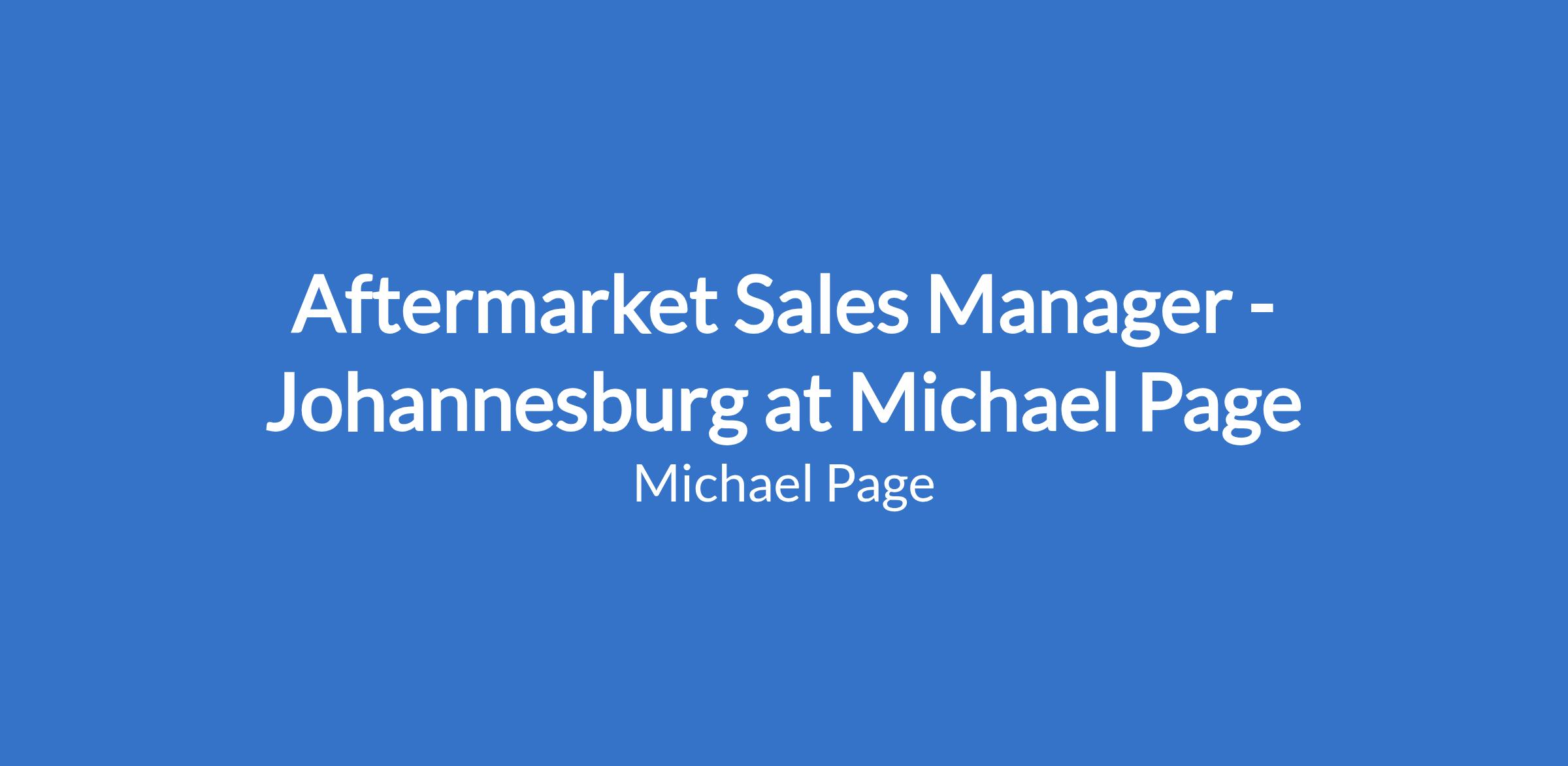 Aftermarket Sales Manager - Johannesburg at Michael Page