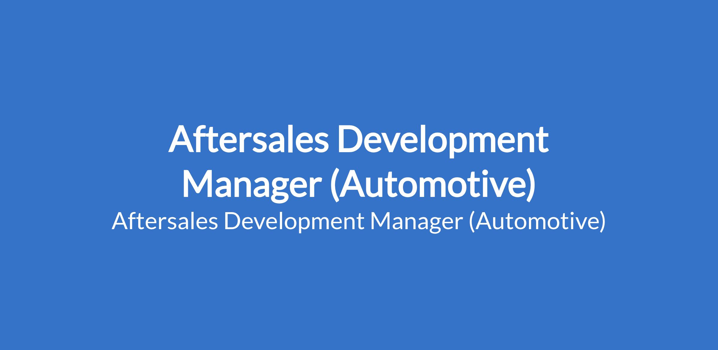 Aftersales Development Manager (Automotive)