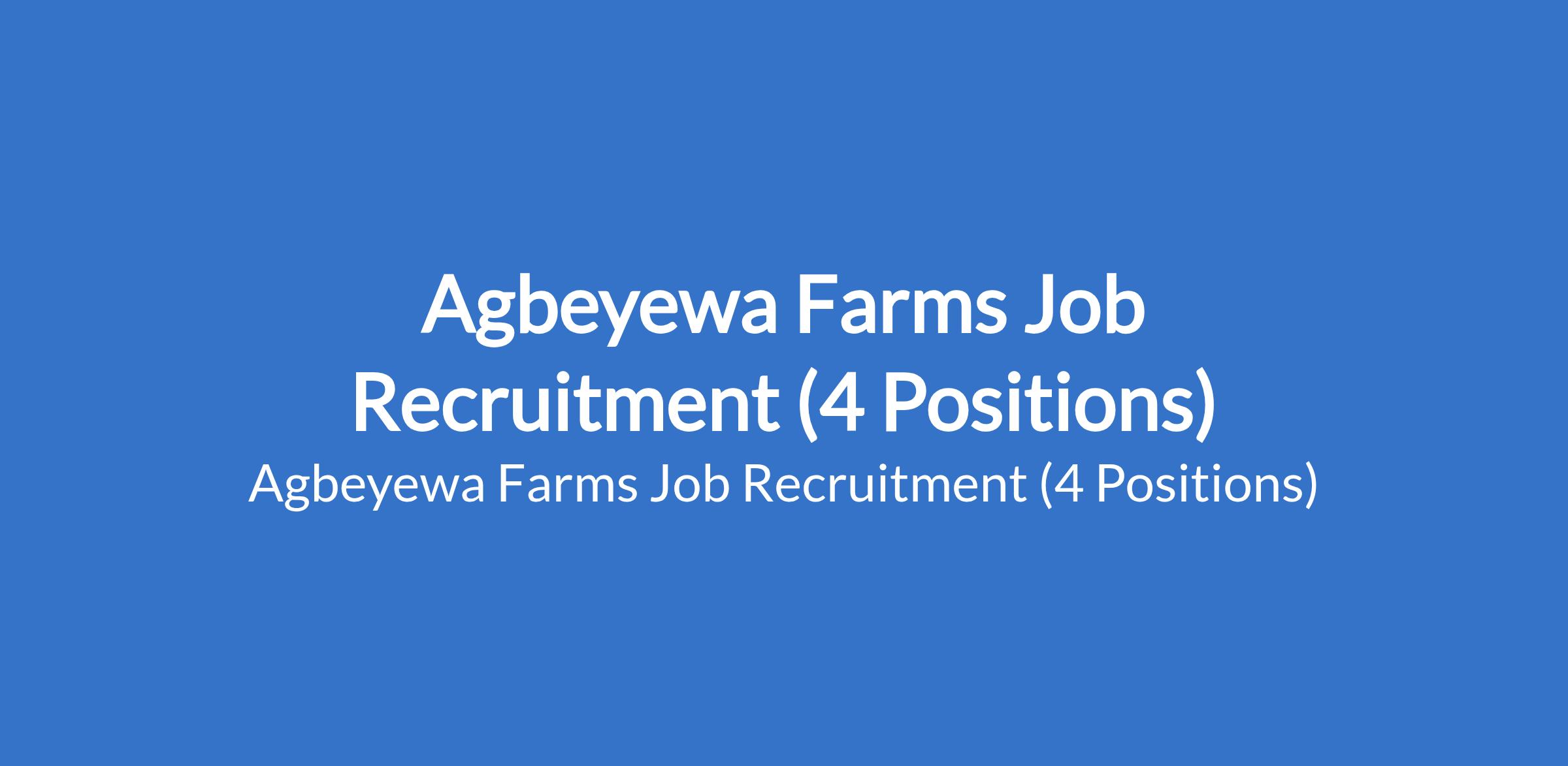 Agbeyewa Farms Job Recruitment (4 Positions)