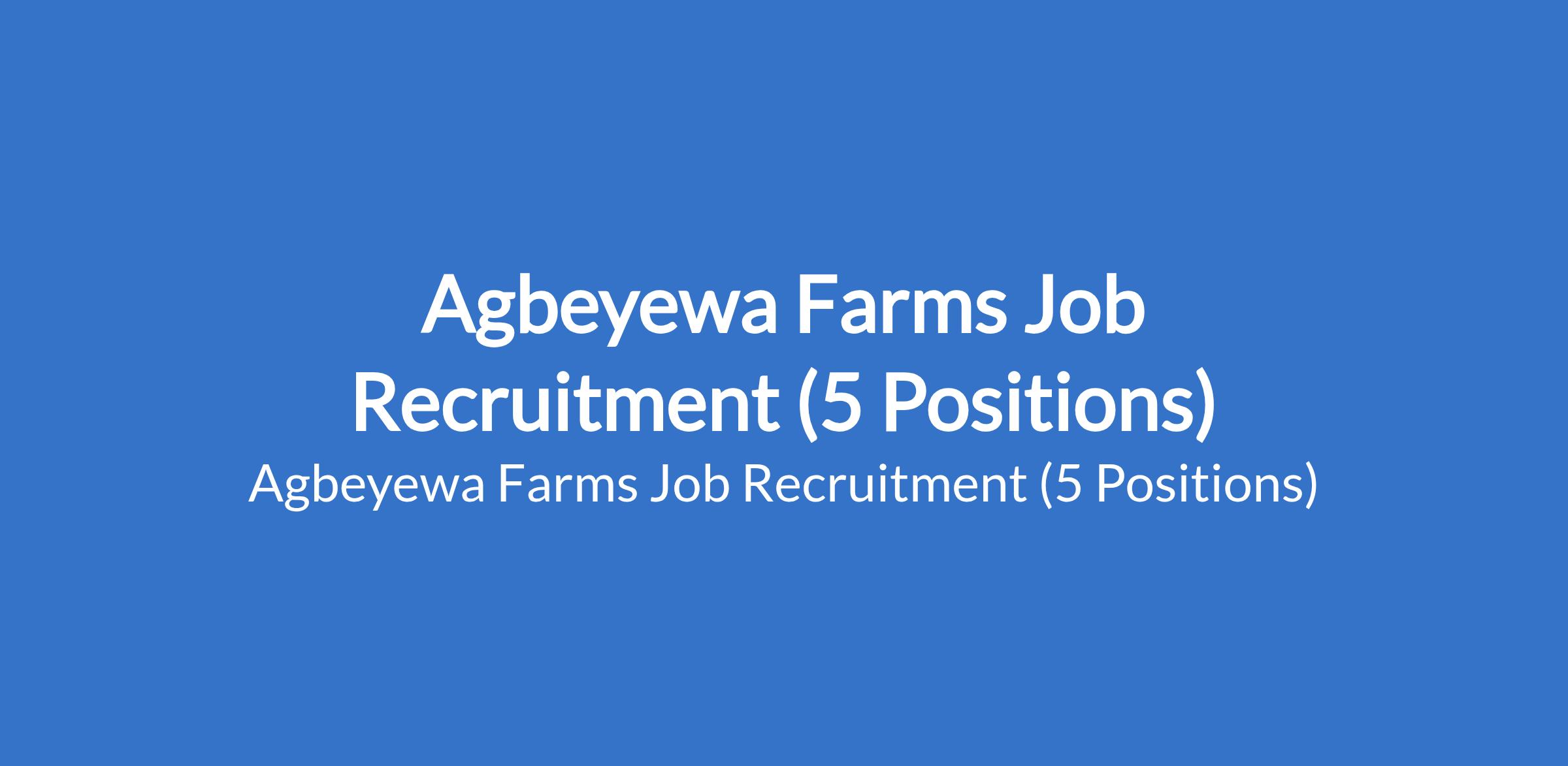 Agbeyewa Farms Job Recruitment (5 Positions)