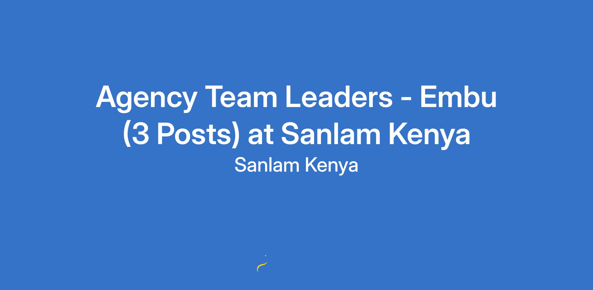 Agency Team Leaders - Embu (3 Posts) at Sanlam Kenya