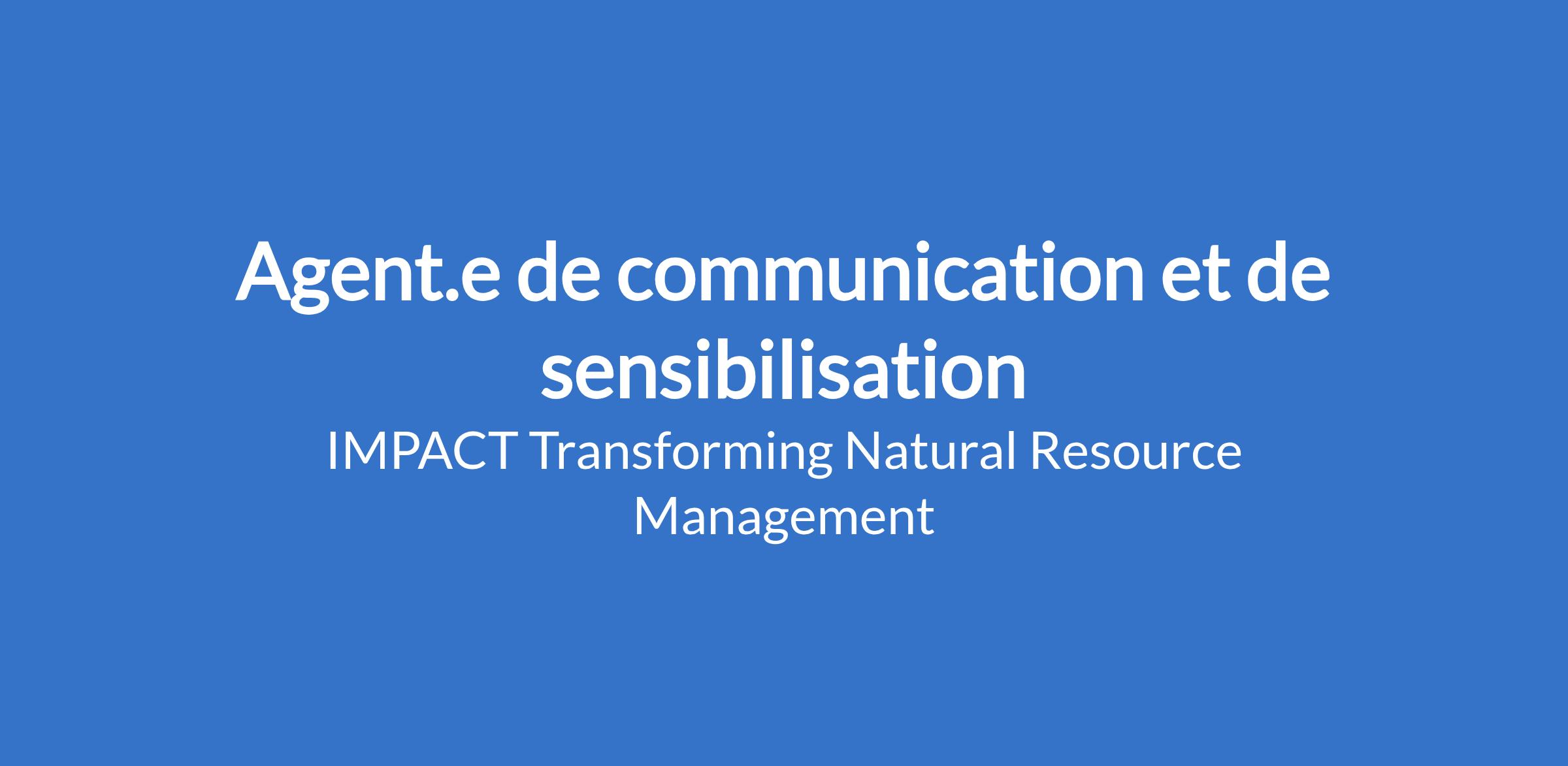 IMPACT est à la recherche d’une agente ou d’un agent de communications qui sera basé en Côte d’Ivoire qui sera responsable de la mise en œuvre de la stratégie de communication, de sensibilisation et de la visibilité du portefeuille de projets de l'organisation dans le pays.