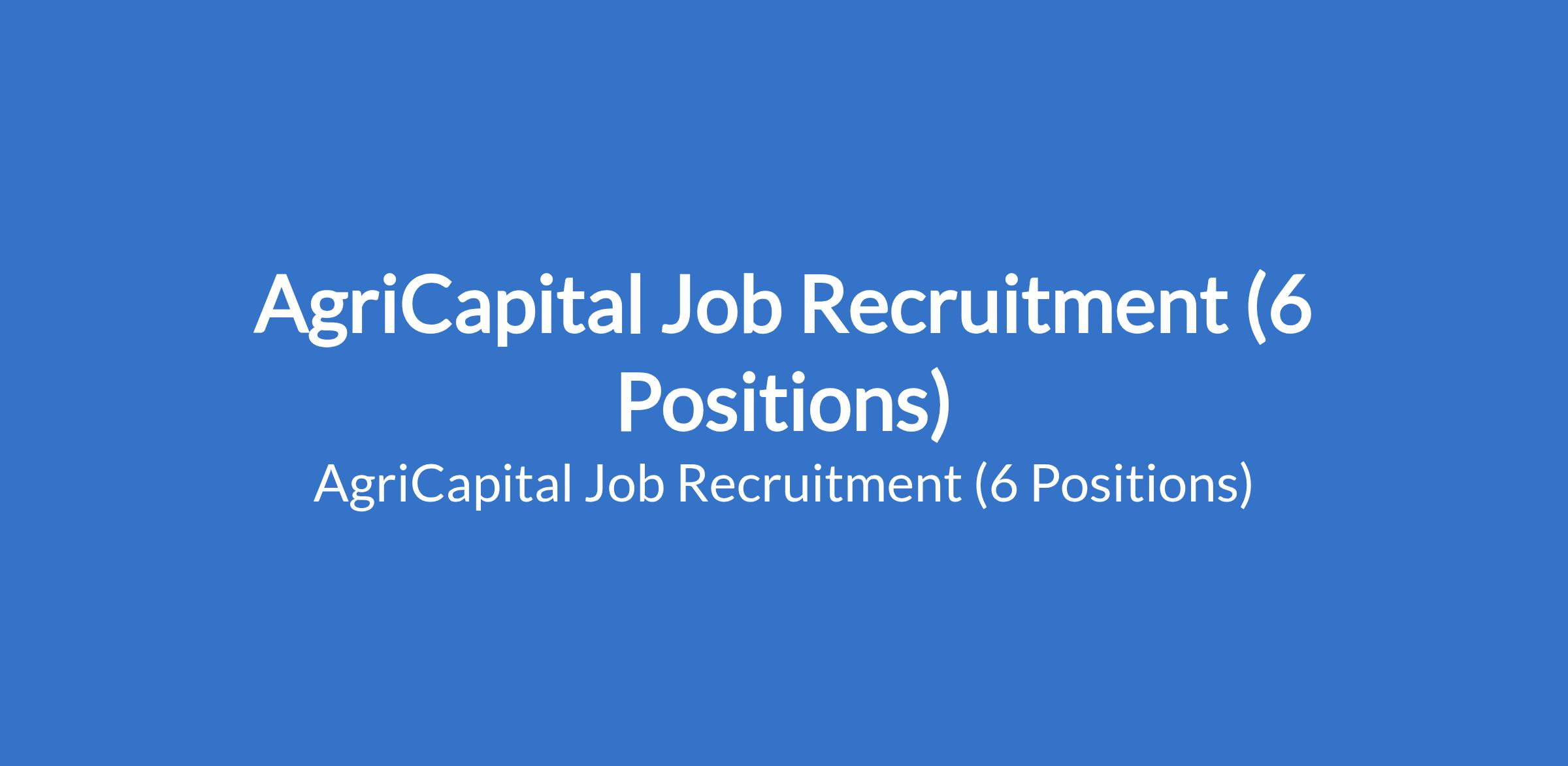 AgriCapital is recruiting suitably qualified candidates to fill the following positions in Lagos & Ogun States: Farm Park Administrator, Sales Executive, Production Chemist (Essential Oils & Personal Care Products), Senior Social Media Executive, Farm Venture Executive, and Senior Farm Worker.