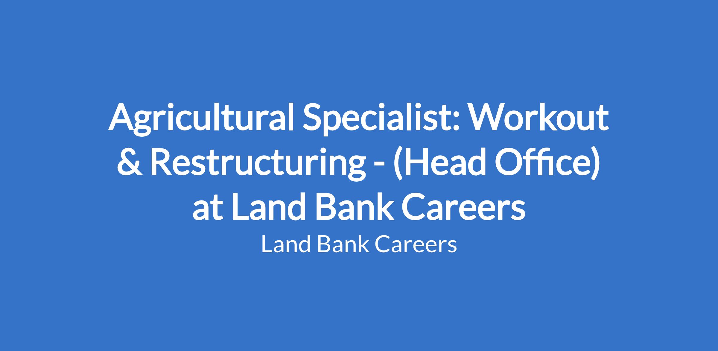 Agricultural Specialist: Workout & Restructuring - (Head Office) at Land Bank Careers