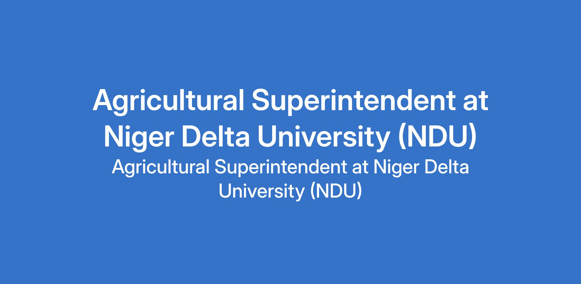 Niger Delta University (NDU) invites applications from suitably qualified candidates to fill the position of: Agricultural Superintendent. The position is located in Wilberforce Island, Bayelsa State. Interested candidates should possess an OND or ND in a relevant field.