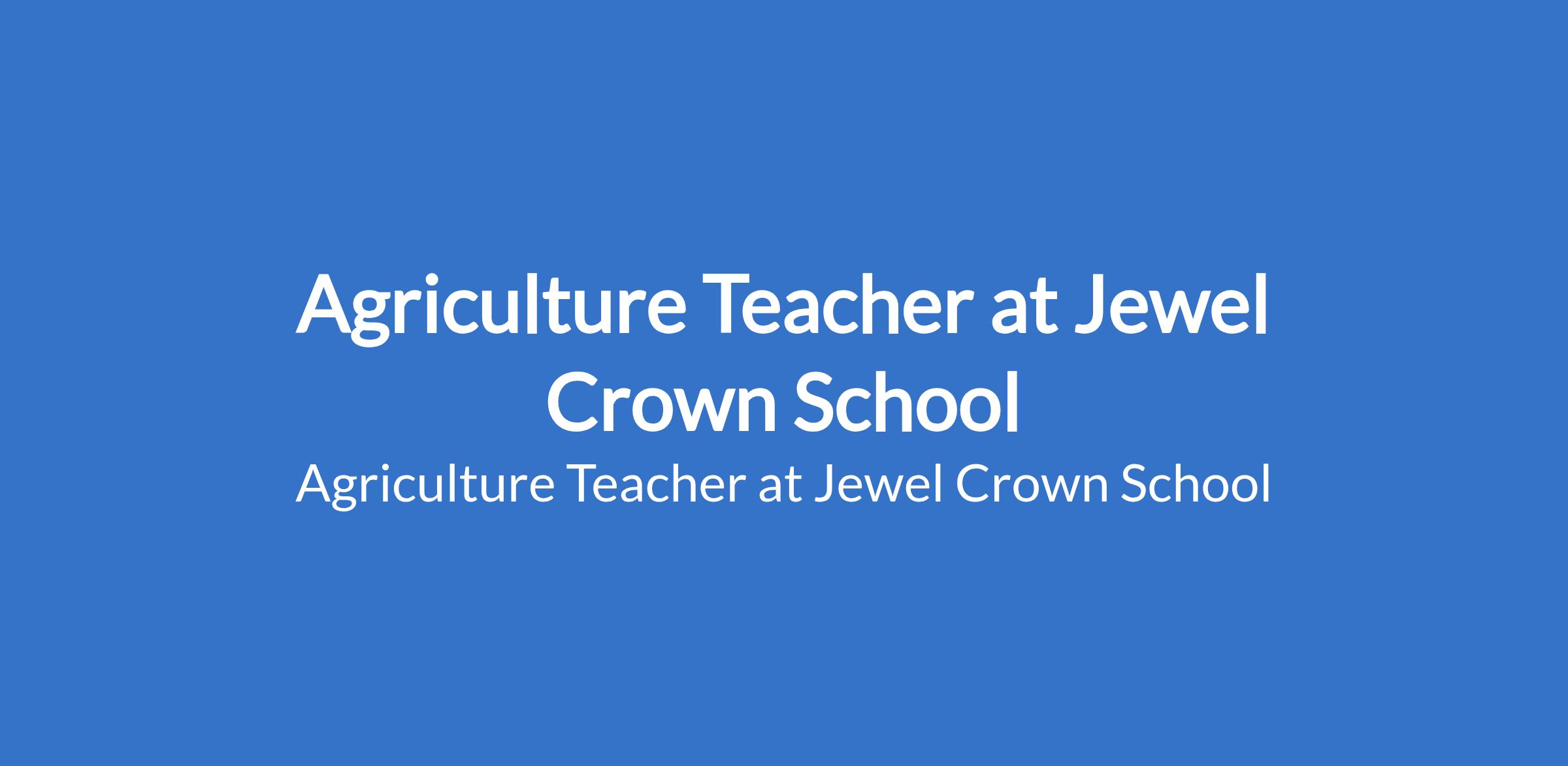 Agriculture Teacher at Jewel Crown School