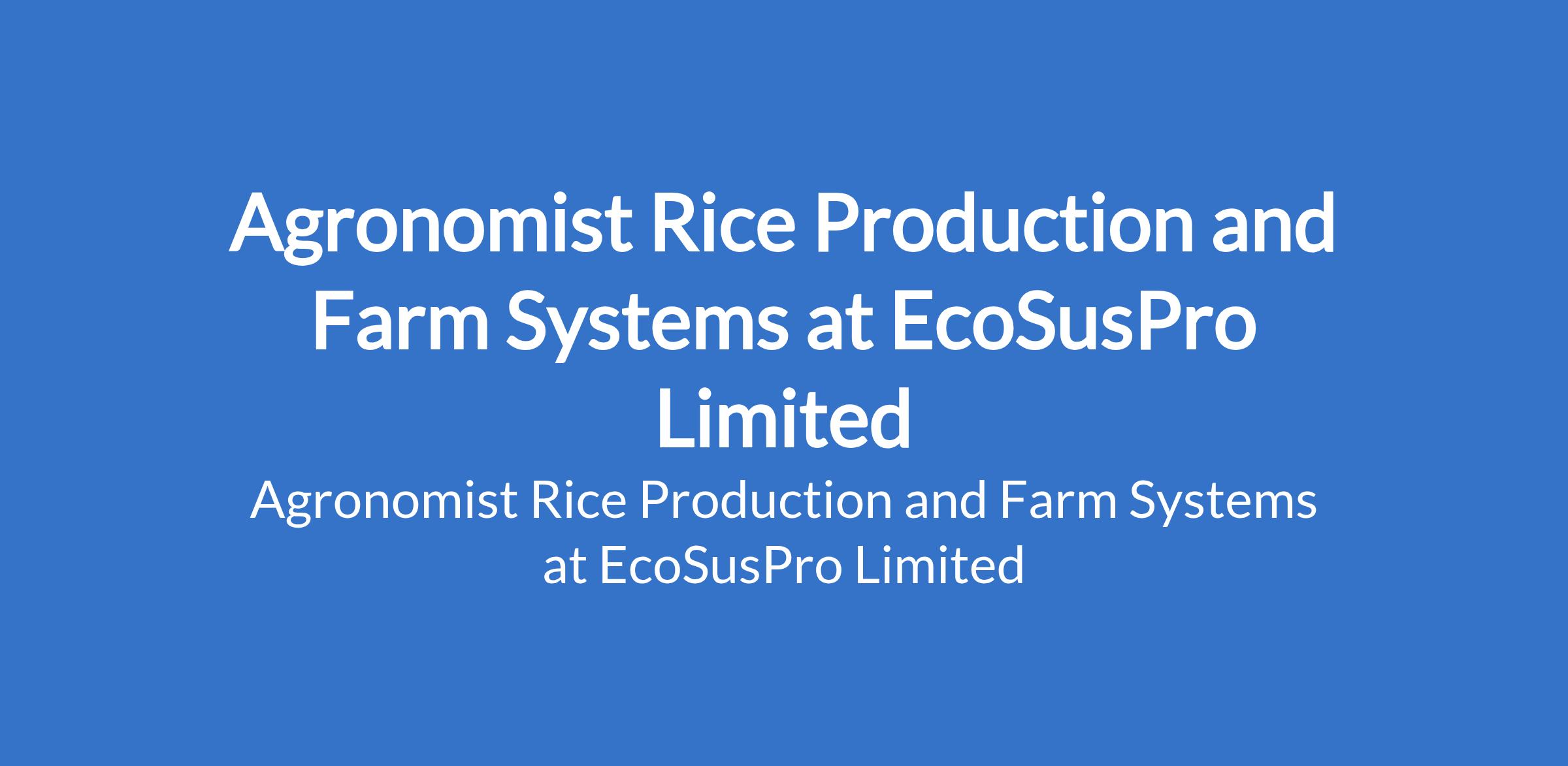 EcoSusPro Limited is recruiting to fill the position of: Agronomist Rice Production and Farm Systems. The position is located in Delta State. Interested candidates should possess a Degree in Agronomy, Crop Science, Agricultural Science, or a related field, with a minimum of 10 years hands-on experience in rice production and farm management, including experience managing large-scale operations and delivering consistent yield outcomes.