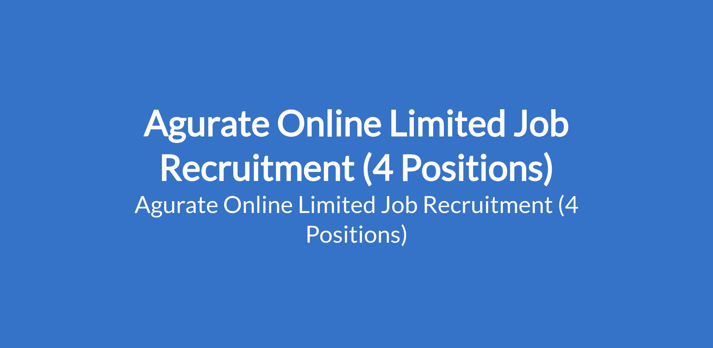 Agurate Online Limited Job Recruitment (4 Positions)