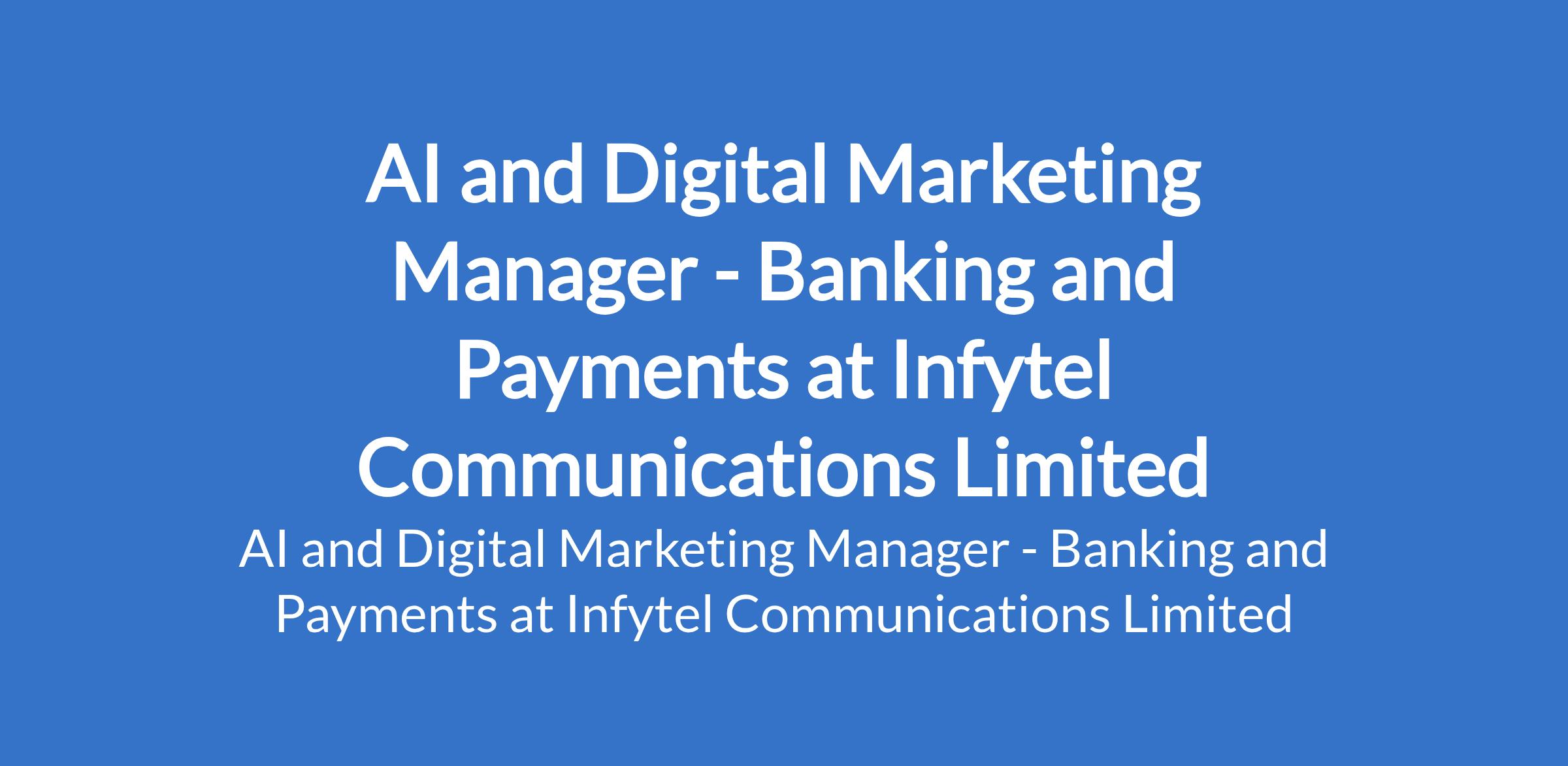 Infytel Communications Limited is recruiting to fill the position of: AI and Digital Marketing Manager - Banking and Payments. The position is located in Lagos State. Interested candidates should possess a Bachelors Degree in Marketing, Business, or a related field with 36 years of experience in digital marketing, with exposure to AI tools.