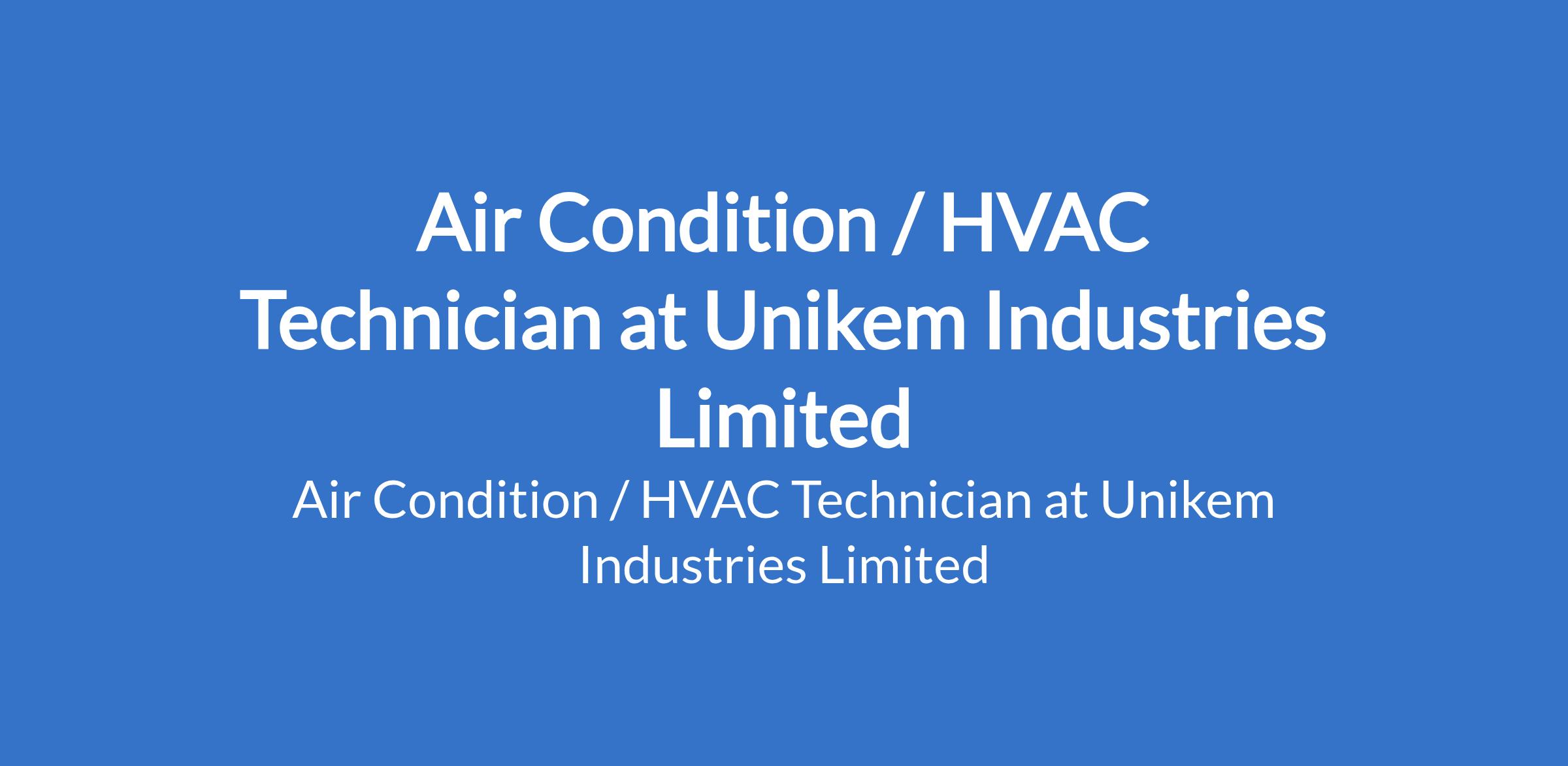 Air Condition / HVAC Technician at Unikem Industries Limited