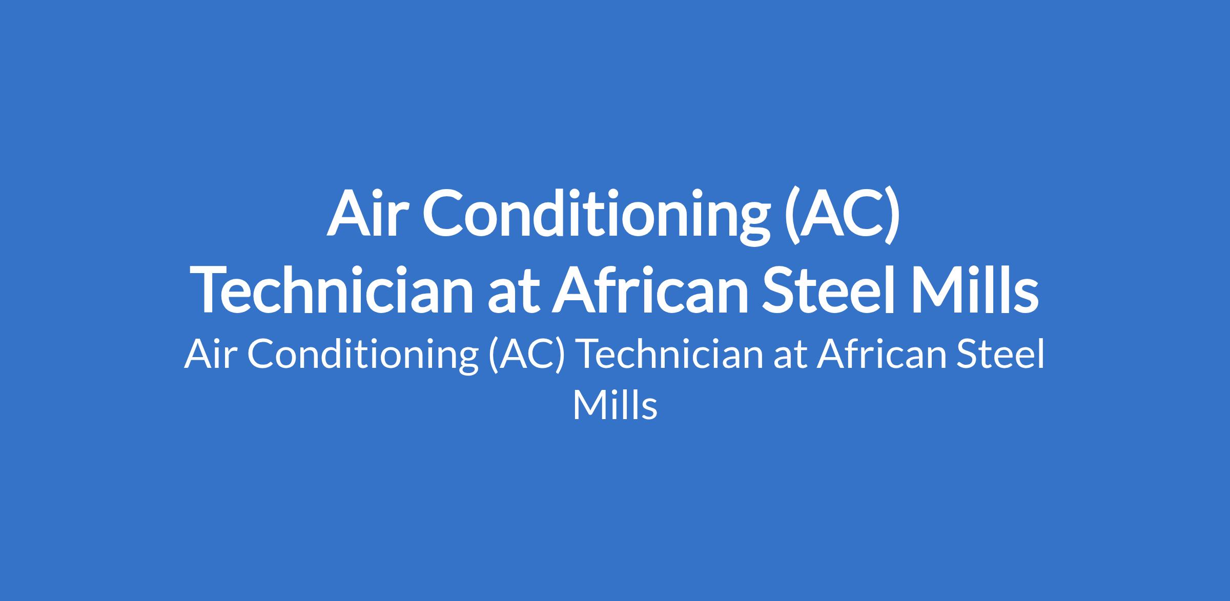 African Steel Mills is recruiting to fill the position of: Air Conditioning (AC) Technician. The position is located in Lagos State. Interested candidates should possess a minimum of SSCE, Trade Test, or Technical Certification in Air Conditioning/Refrigeration with 24 years of experience as an AC Technician, preferably in a manufacturing or industrial environment.