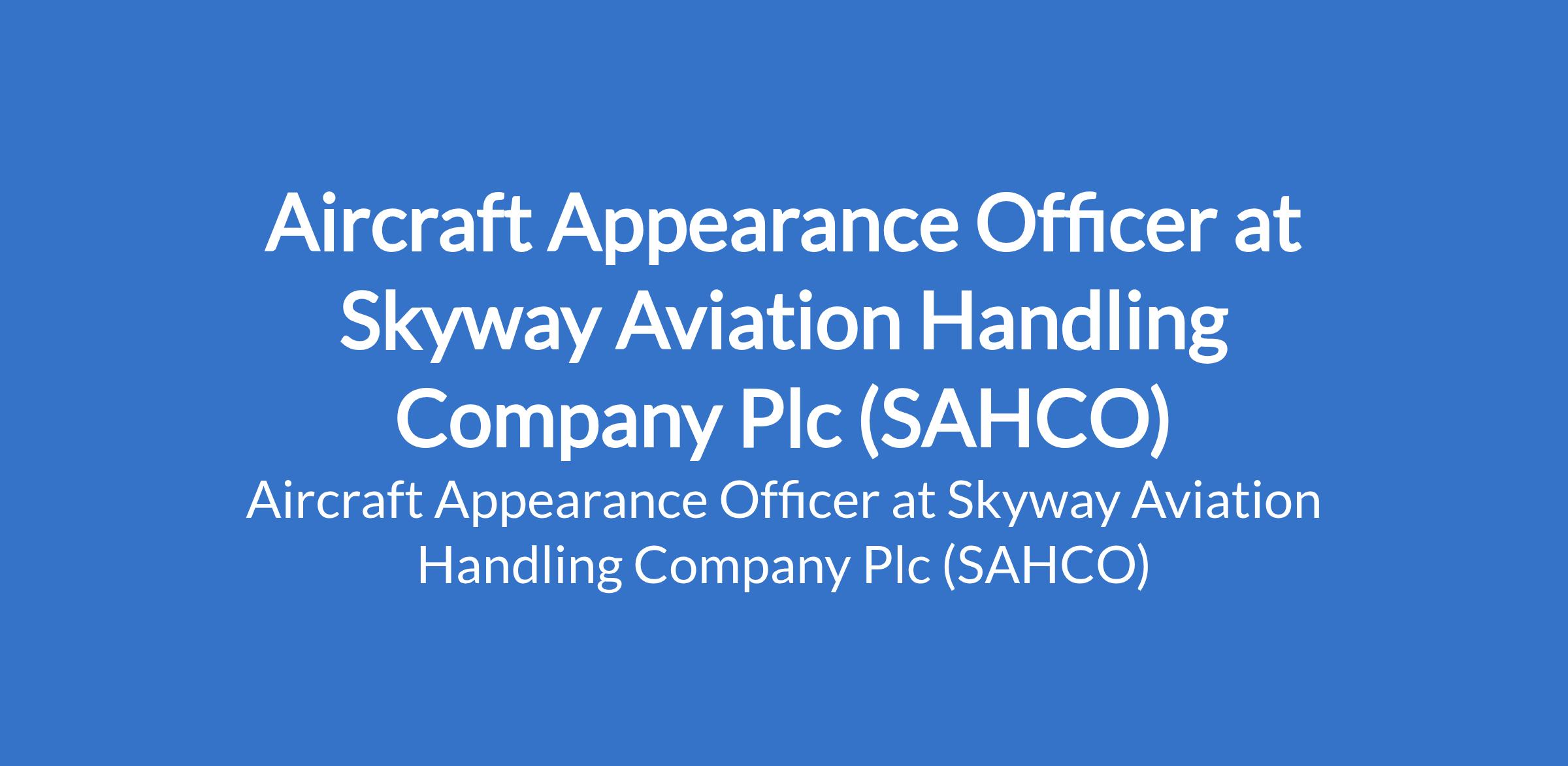 Aircraft Appearance Officer at Skyway Aviation Handling Company Plc (SAHCO)