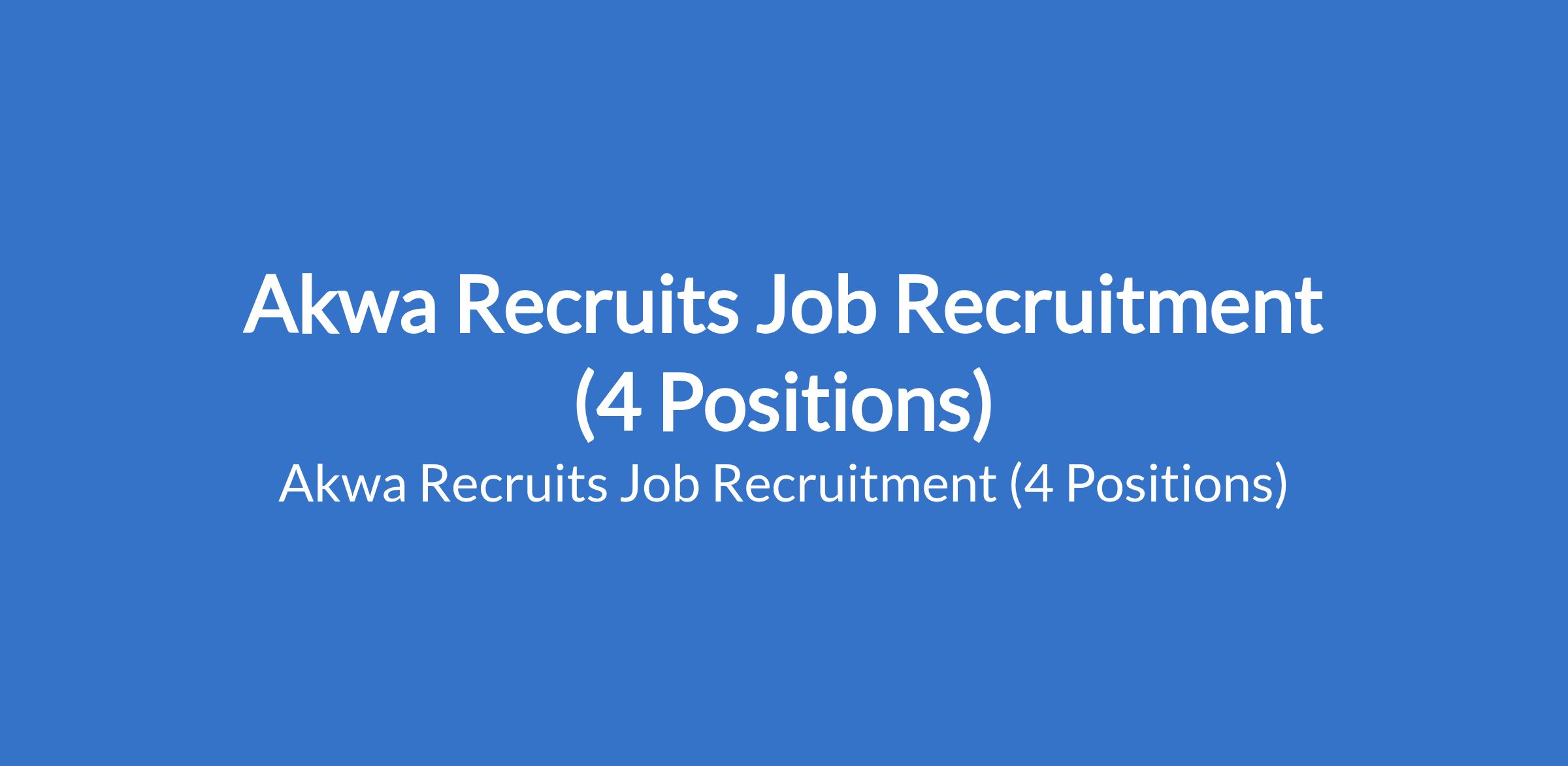 Akwa Recruits is recruiting suitably qualified candidates to fill the following positions in Lagos State: Personal Assistant, Driver, Accountant, and Instrumentation Engineer.