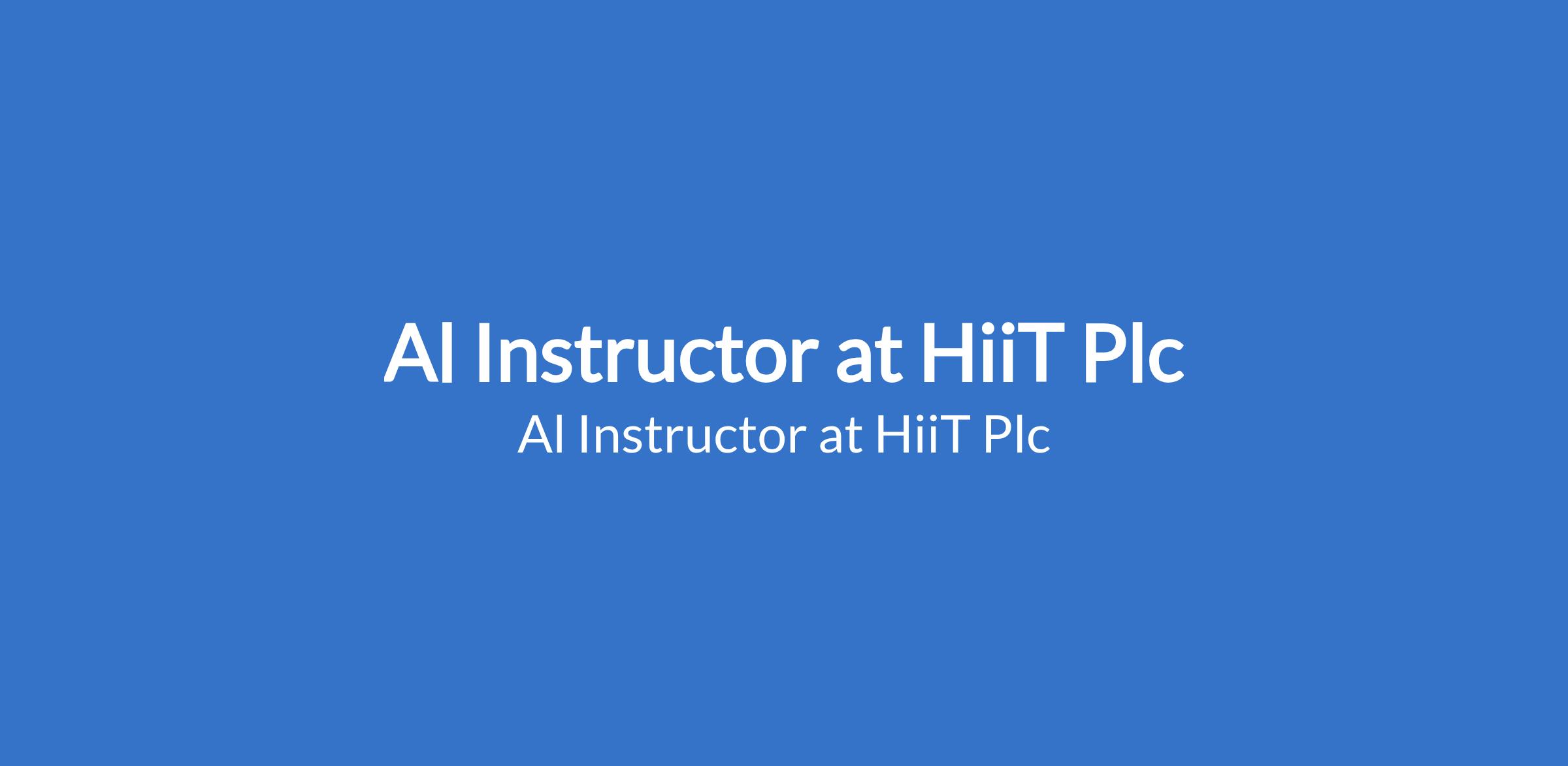 Al Instructor at HiiT Plc