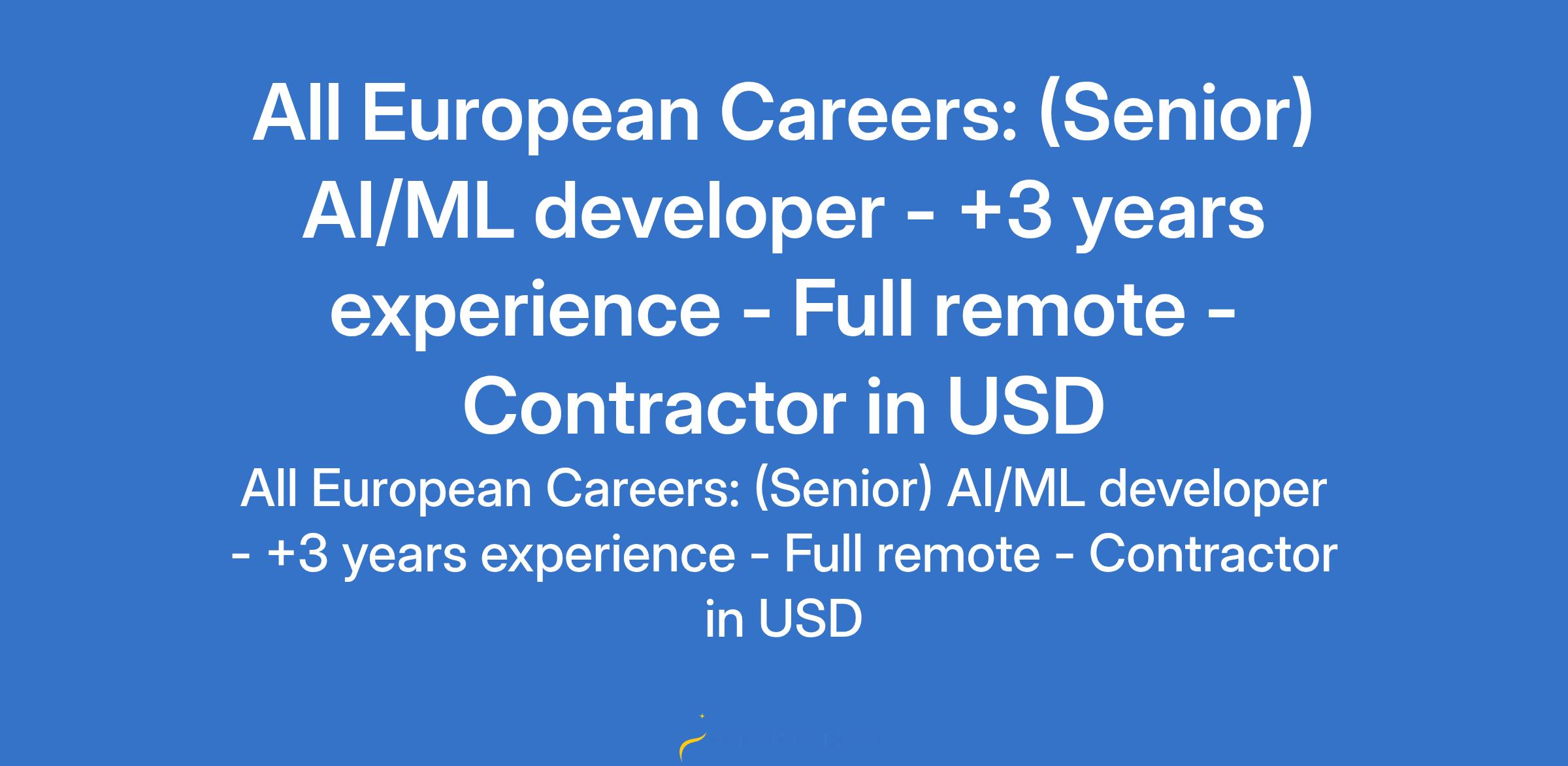 All European Careers: (Senior) AI/ML developer - +3 years experience - Full remote - Contractor in USD