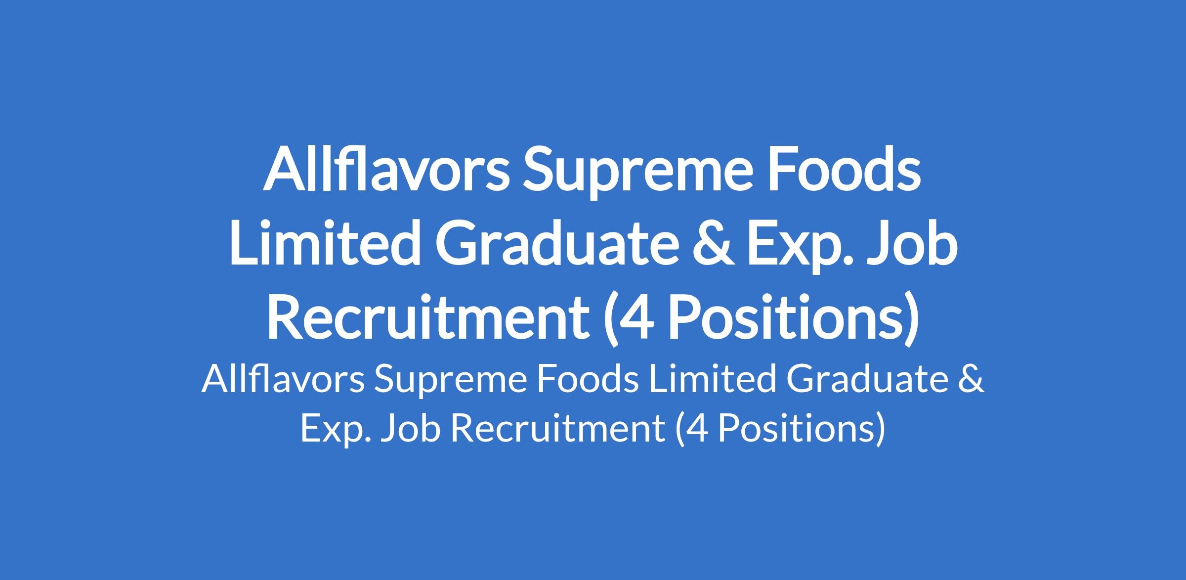 Allflavors Supreme Foods Limited Graduate & Exp. Job Recruitment (4 Positions)