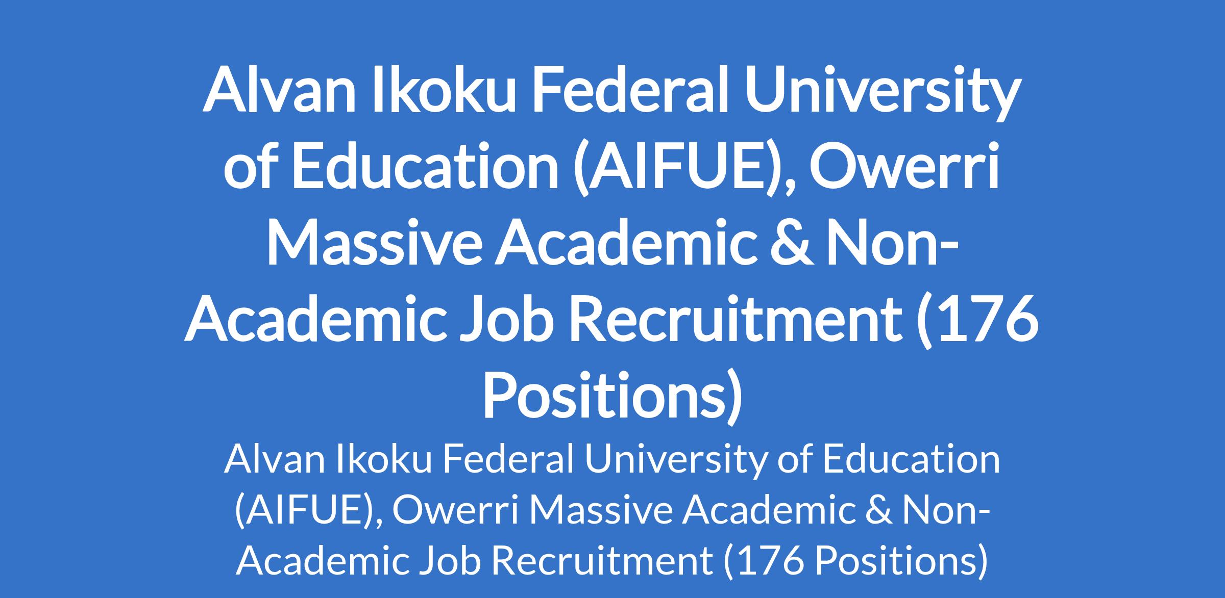 Alvan Ikoku Federal University of Education (AIFUE), Owerri Massive Academic & Non-Academic Job Recruitment (176 Positions)
