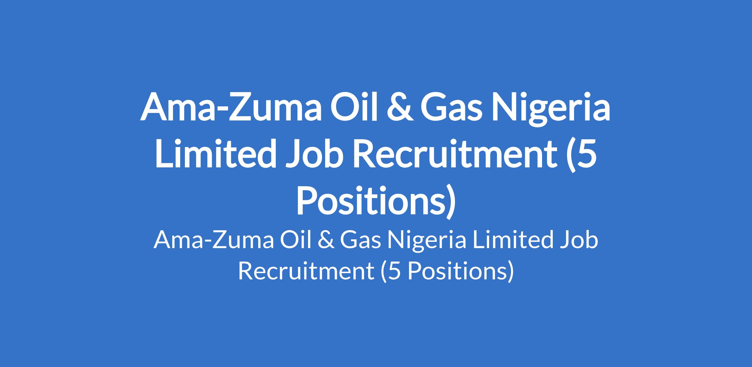 Ama-Zuma Oil & Gas Nigeria Limited Job Recruitment (5 Positions)