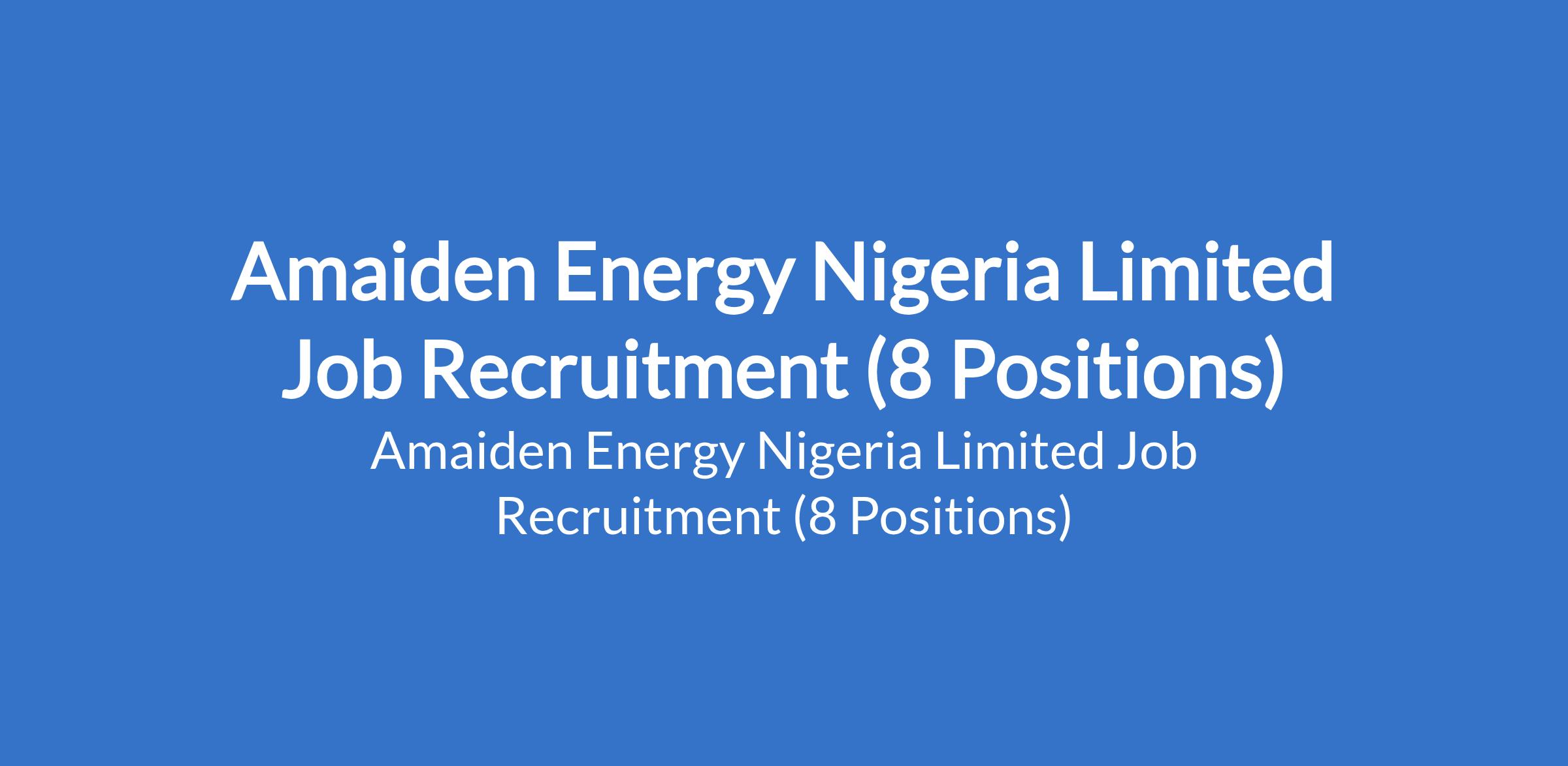 Amaiden Energy Nigeria Limited is recruiting suitable candidates to fill the following positions in Lagos and Rivers States: Engineering - Machinery Engineer / Specialist II, Projects - Construction Coordinator III, Projects - Contracts Advisor, Governance & C&P Committee Coordinator, Data Analyst (Reporting & Analytics), Instrument Maintenance Technician I, Recruiter, and Marine Advisor III.