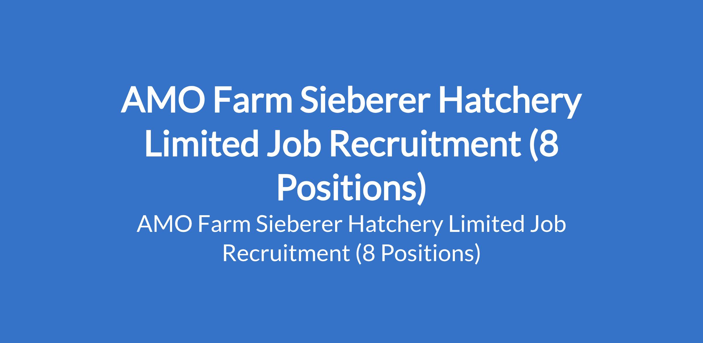 AMO Farm Sieberer Hatchery Limited is recruiting suitably qualified candidates to fill the following positions in Lagos, Oyo, Adamawa, Sokoto, and Bauchi States: Legal Manager, Pastoralist Area Farmers Satisfaction Representative, Internal Control Officer, Livestock Procurement Officer, Maintenance Manager, Internal Audit Manager, Gender Specialist, and Account Officer.
